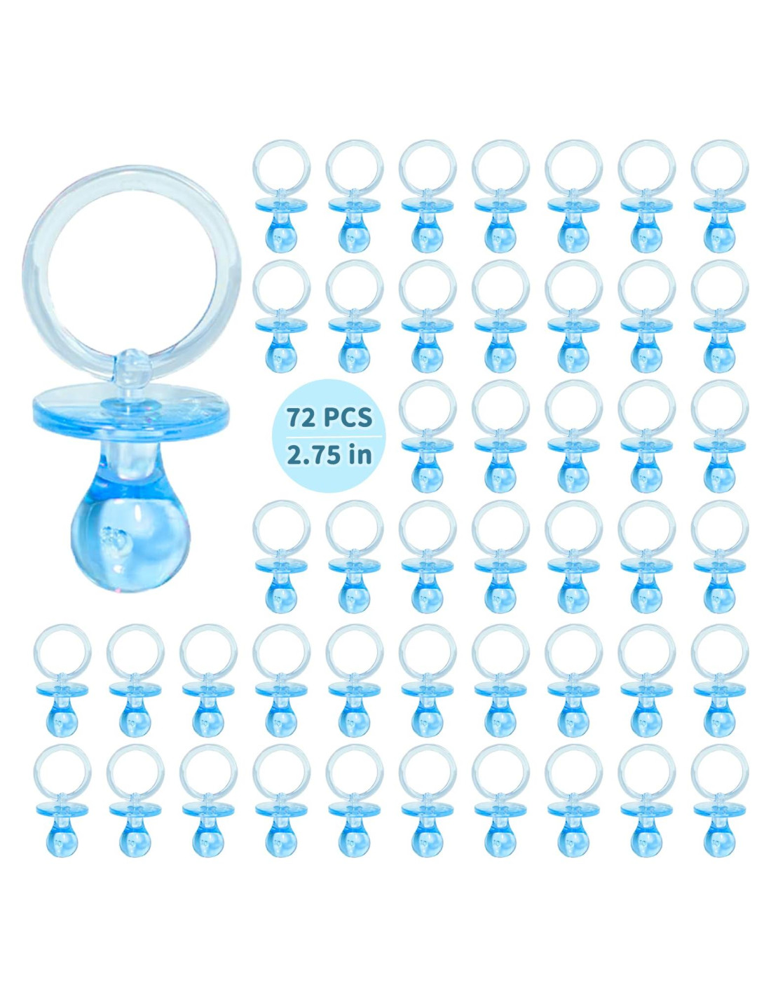 - Material Acrílico Confiable - Estos chupetes de acrílico para baby shower están hechos de material acrílico de alta calidad, que es suave, duradero e inodoro. Seguro de usar como decoración de mesa o llevar en tu cuerpo