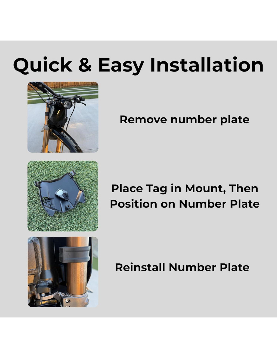 - Tres Opciones de Montaje: Soporte de Luz Trasera, Soporte de Placa de Número y Soporte Bajo Guardabarros