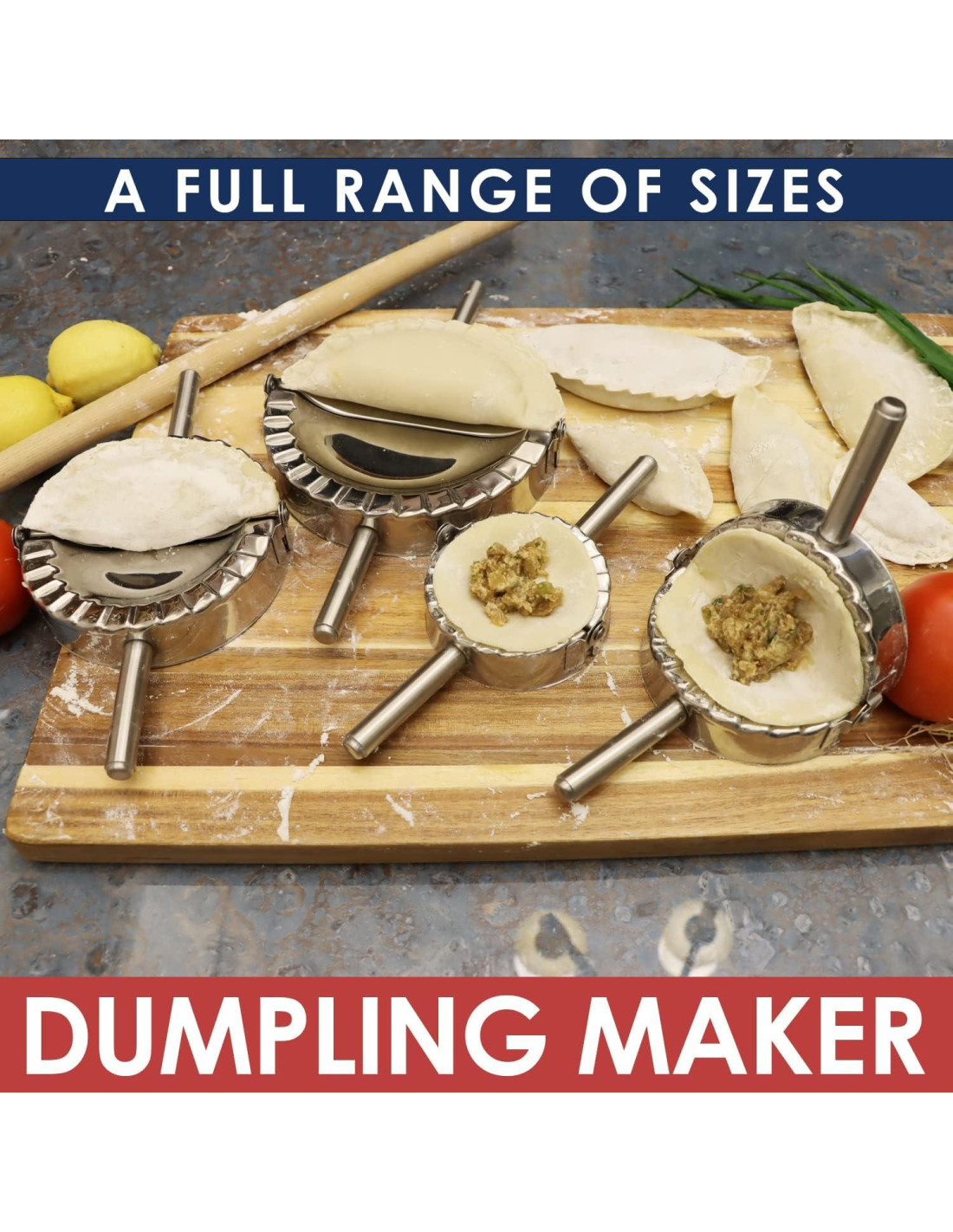 - 4 TAMAÑOS INCLUIDOS - Experimenta la calidad premium del juego de prensa de dumplings en Amazon, el juego incluye 4 tamaños para satisfacer tus diferentes necesidades en la cocina. Tamaño X-Large (15 cm), Tamaño X (12 cm), Tamaño Mediano (10 cm), Tamaño Pequeño (8 cm). Con cuatro tamaños diferentes, este juego permite una variedad de usos, desde pequeños dumplings hasta empanadas más grandes, asegurando que tengas la herramienta adecuada para cualquier comida deliciosa.