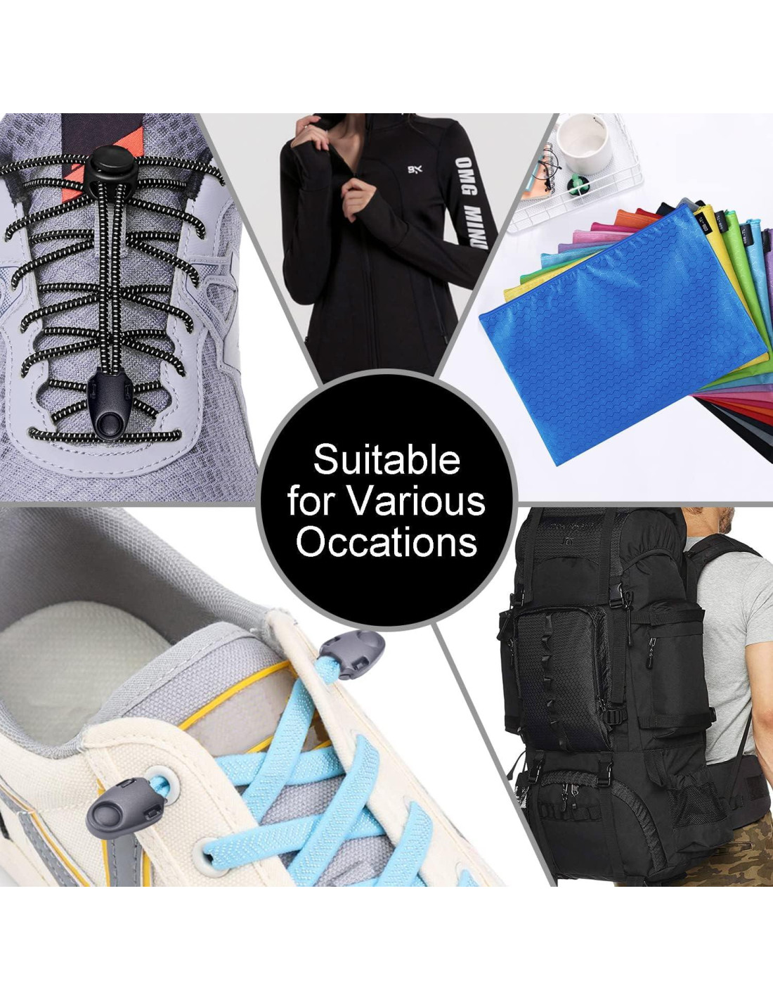 - Aplicación: los tapones de cordón de cremallera se utilizan ampliamente en varios artículos exquisitos o accesorios de reemplazo para ropa deportiva, botas, zapatos, equipaje, bolsos, cuerdas de tiro, lazos de llavero de paracord, pulseras, cuerda de paracaídas 550, proyectos de bricolaje, etc.
