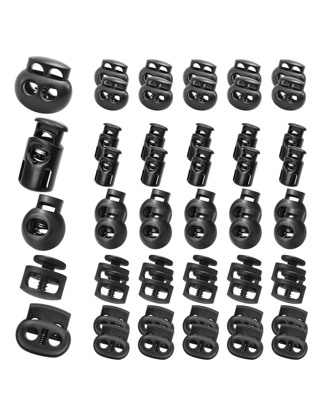 - Kit de Cierre de Cuerda de Resorte: 50pcs de 5 tipos diferentes de cierres de cuerda de resorte, adecuados para tus diferentes escenarios y cuerdas. Por favor, revisa la imagen para el tamaño, los cierres de cuerda no incluyen la cuerda