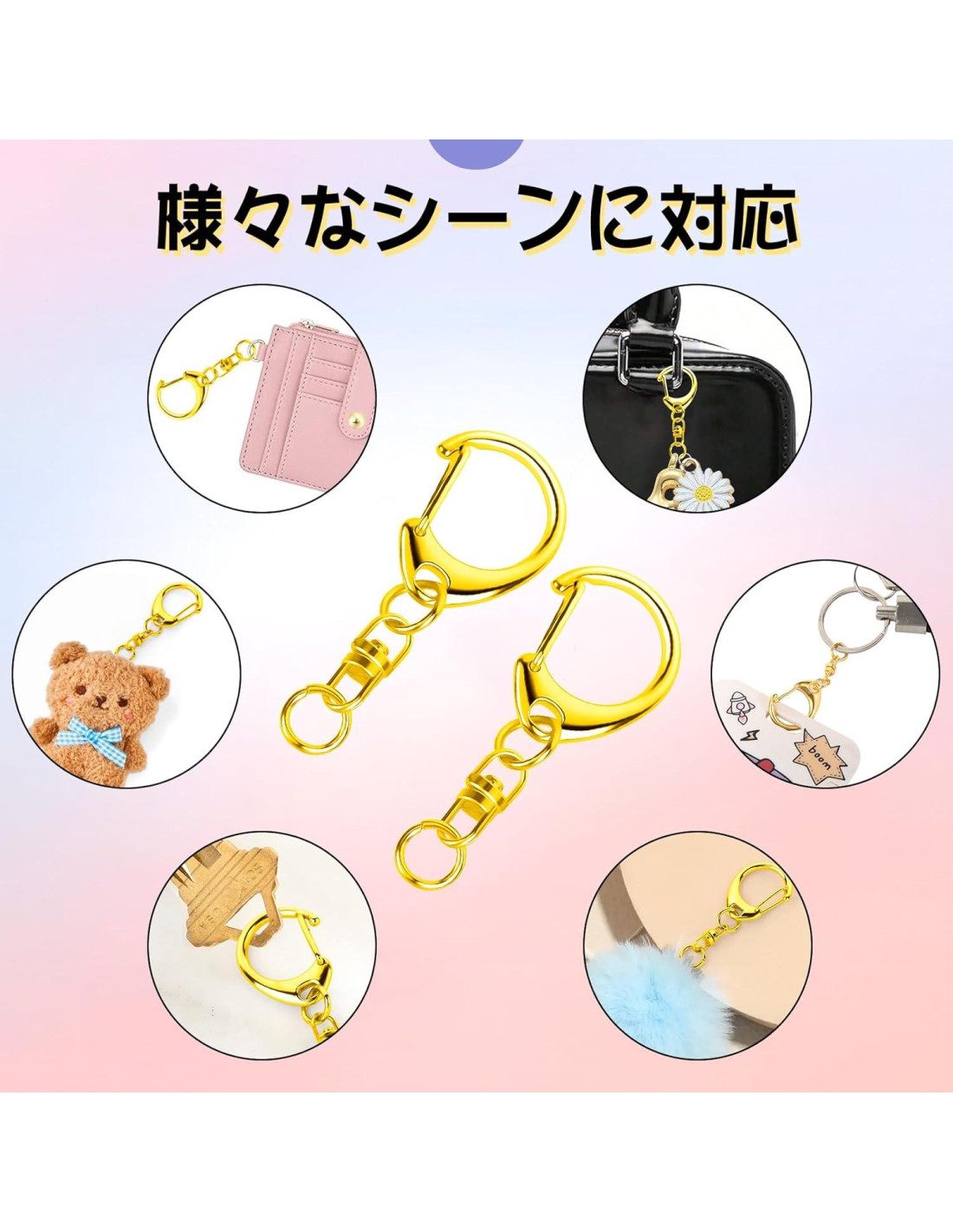 - Tamaño: 4.39 cm * 1.40 cm. Viene con 50 clips de llavero de gancho D dorados.