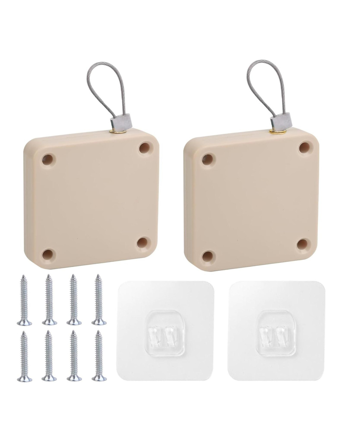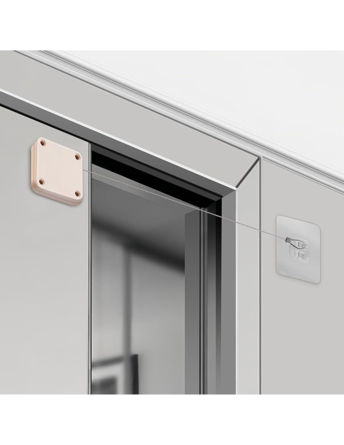 - [Fácil de usar] : Solo despega la etiqueta del cierre de puerta y la etiqueta del gancho para instalar donde desees, (esperar algunas horas para aumentar la viscosidad será lo mejor después de pegar la etiqueta) luego cuelga la cuerda de acero en el gancho. También puedes usar los tornillos (que vienen con el producto) para instalar.