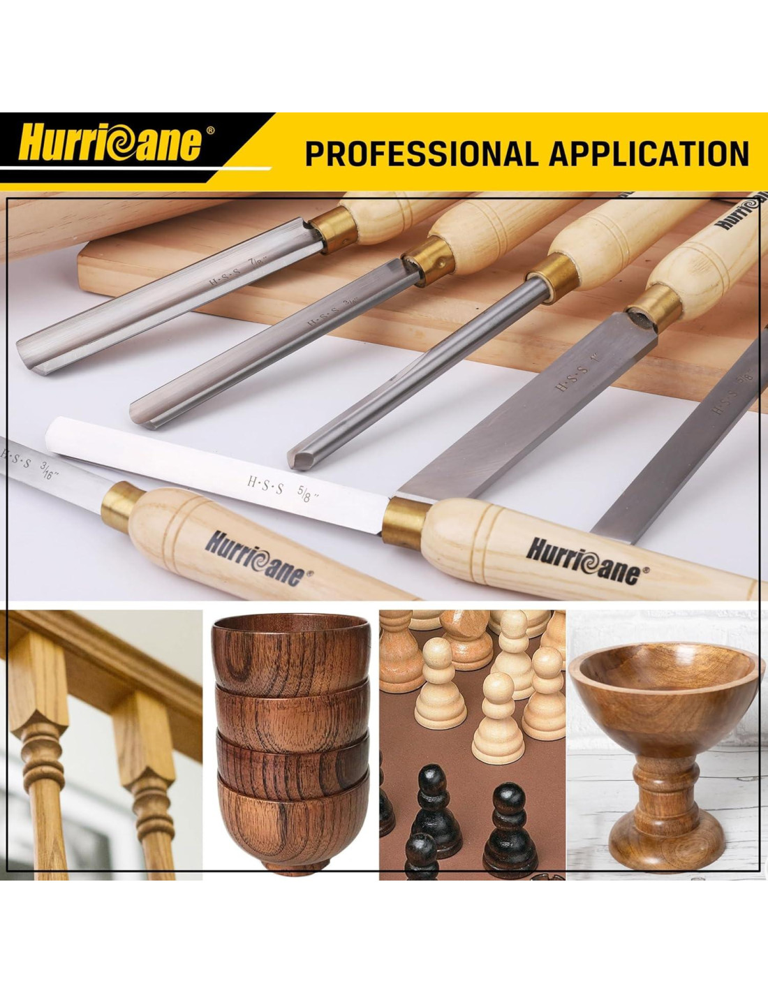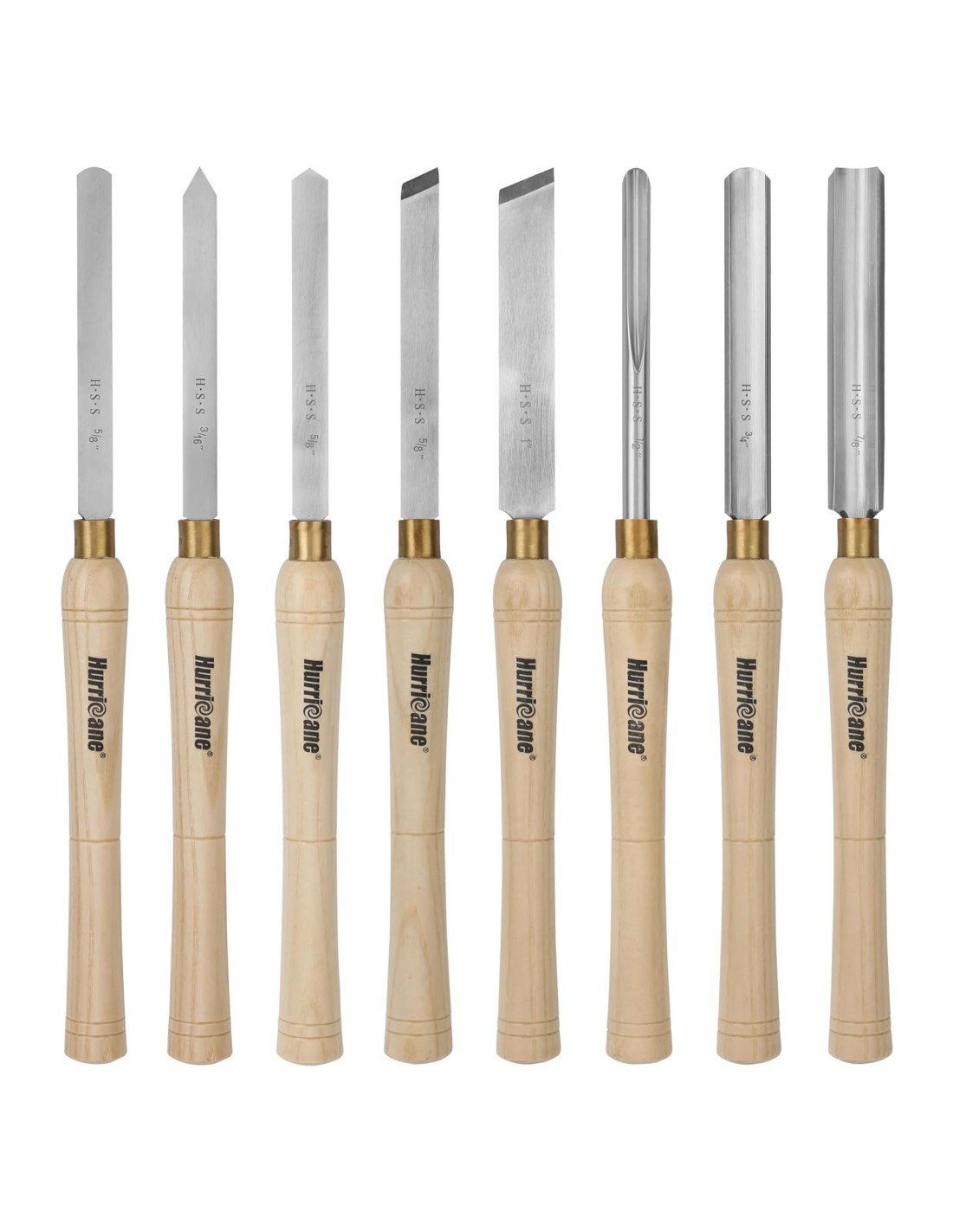 - Herramientas de Torno de Madera Duraderas y Afiladas: El juego de Herramientas de Torno de Madera HURRICANE incluye 8 herramientas de precisión diseñadas para el torneado de madera. Longitud de la hoja 6-1/4" (15,88 cm), incluye 8 cinceles: Herramienta de Partición 3/16" (0,48 cm), Raspador de Punta 5/8" (1,59 cm), Cincel Sesgado 1" (2,54 cm), Cincel Sesgado 5/8" (1,59 cm), Gubia de Eje 3/4" (1,91 cm), Raspador de Punta Redonda 5/8" (1,59 cm), Gubia de Tazón 1/2" (1,27 cm), Gubia de Desbaste 7/8" (2,22 cm). El juego presenta una variedad de cinceles como la Herramienta de Partición, Raspador de Punta y Cincel Sesgado. Estas herramientas de torneado para torno son perfectas para carpinteros de todos los niveles de habilidad.