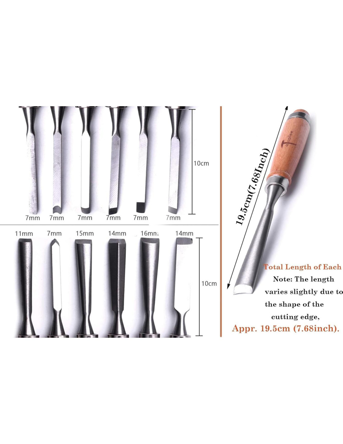 - [Listo para usar] Cada borde de corte está afilado y pulido, listo para su uso inmediato o, afilar con una piedra de afilar antes de usarlo será más afilado y el efecto será mejor. Herramientas de tallado Longitud total: 20 cm (aprox. 7.87 pulgadas); Longitud de la cuchilla del cincel: 10 cm (aprox. 3.94 pulgadas); Longitud del mango: 10 cm (aprox. 3.94 pulgadas)