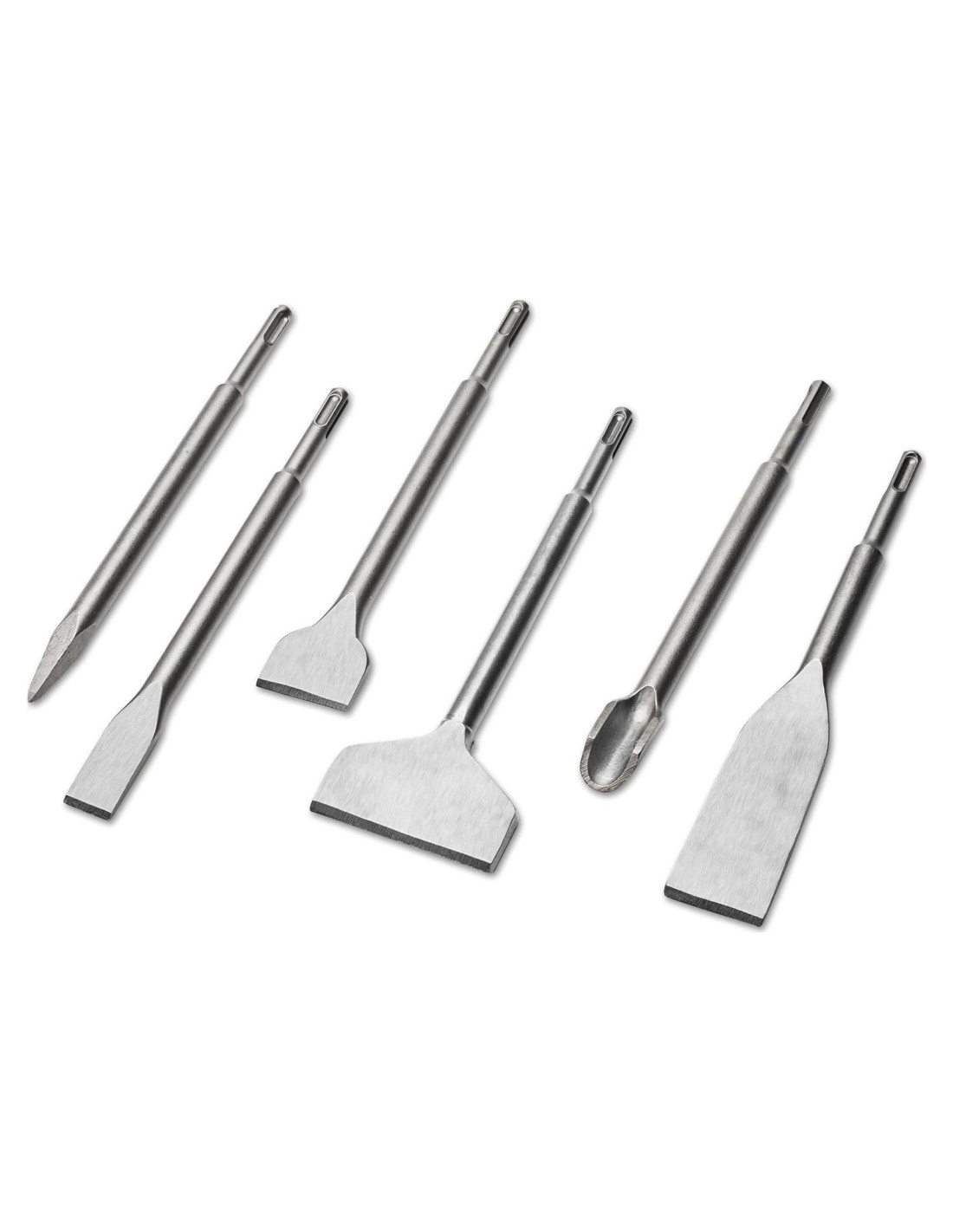 - Juego Completo de 6 Piezas de Cinceles: Estas herramientas de demolición incluyen un cincel para azulejos, cincel de ranura, cincel de raspado, cincel plano, cincel puntiagudo y cincel de escalado, ideales para la remoción de azulejos, perforación de paredes y raspado de suelos.