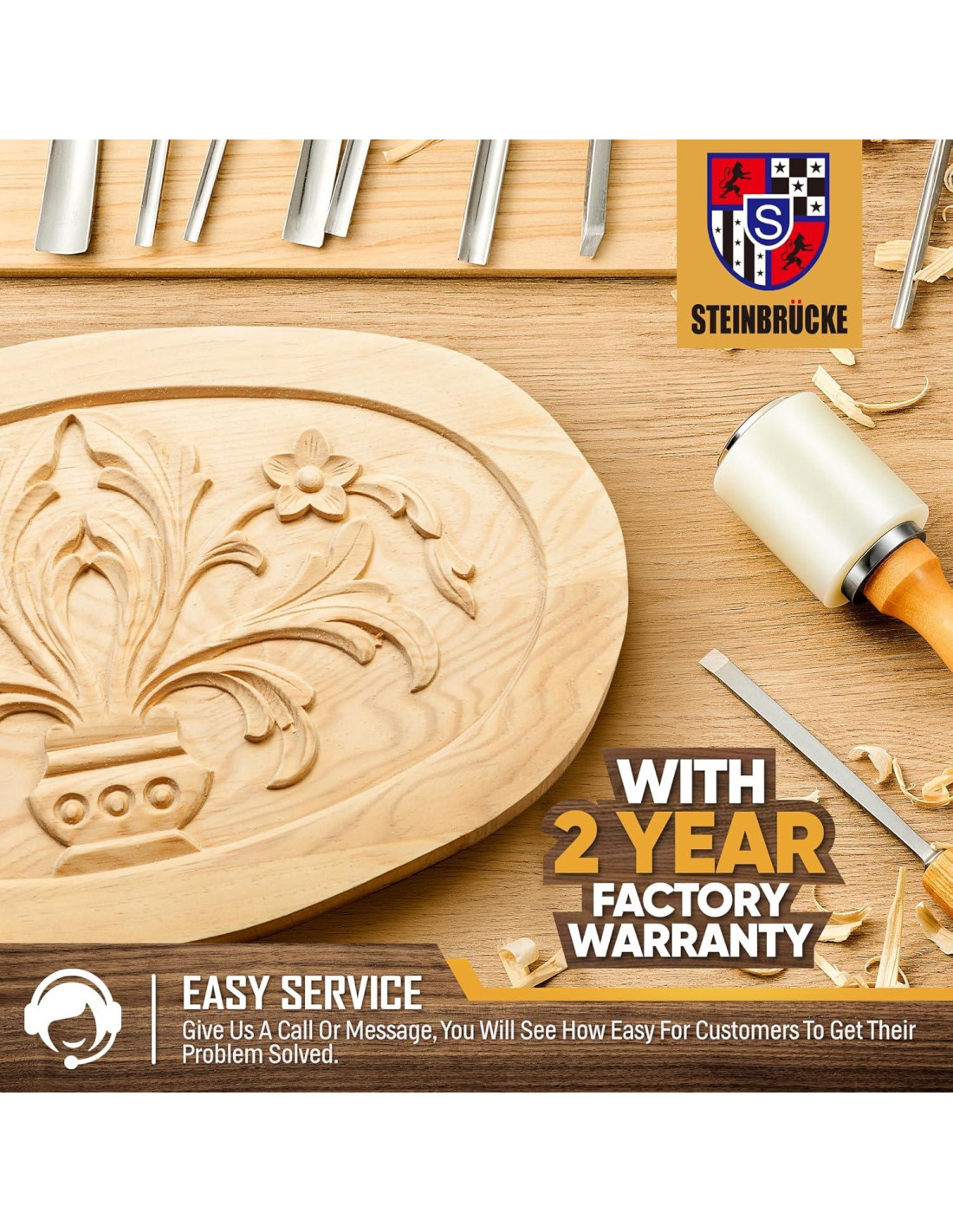 - Carve Longer Este kit de tallado en madera está hecho de acero de aleación de cromo-vanadio de alta calidad y endurecido a Rockwell C60, por lo que las cuchillas mantendrán un filo durante mucho tiempo y no se desgastarán rápidamente con el uso repetido. Cuchillas robustas y pesadas están diseñadas para soportar un uso intensivo con el mazo.