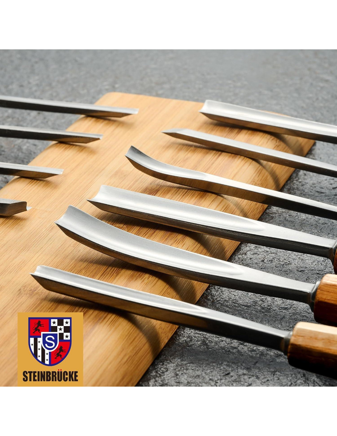 - Carve Longer Este kit de tallado en madera está hecho de acero de aleación de cromo-vanadio de alta calidad y endurecido a Rockwell C60, por lo que las cuchillas mantendrán un filo durante mucho tiempo y no se desgastarán rápidamente con el uso repetido. Cuchillas robustas y pesadas están diseñadas para soportar un uso intensivo con el mazo.
