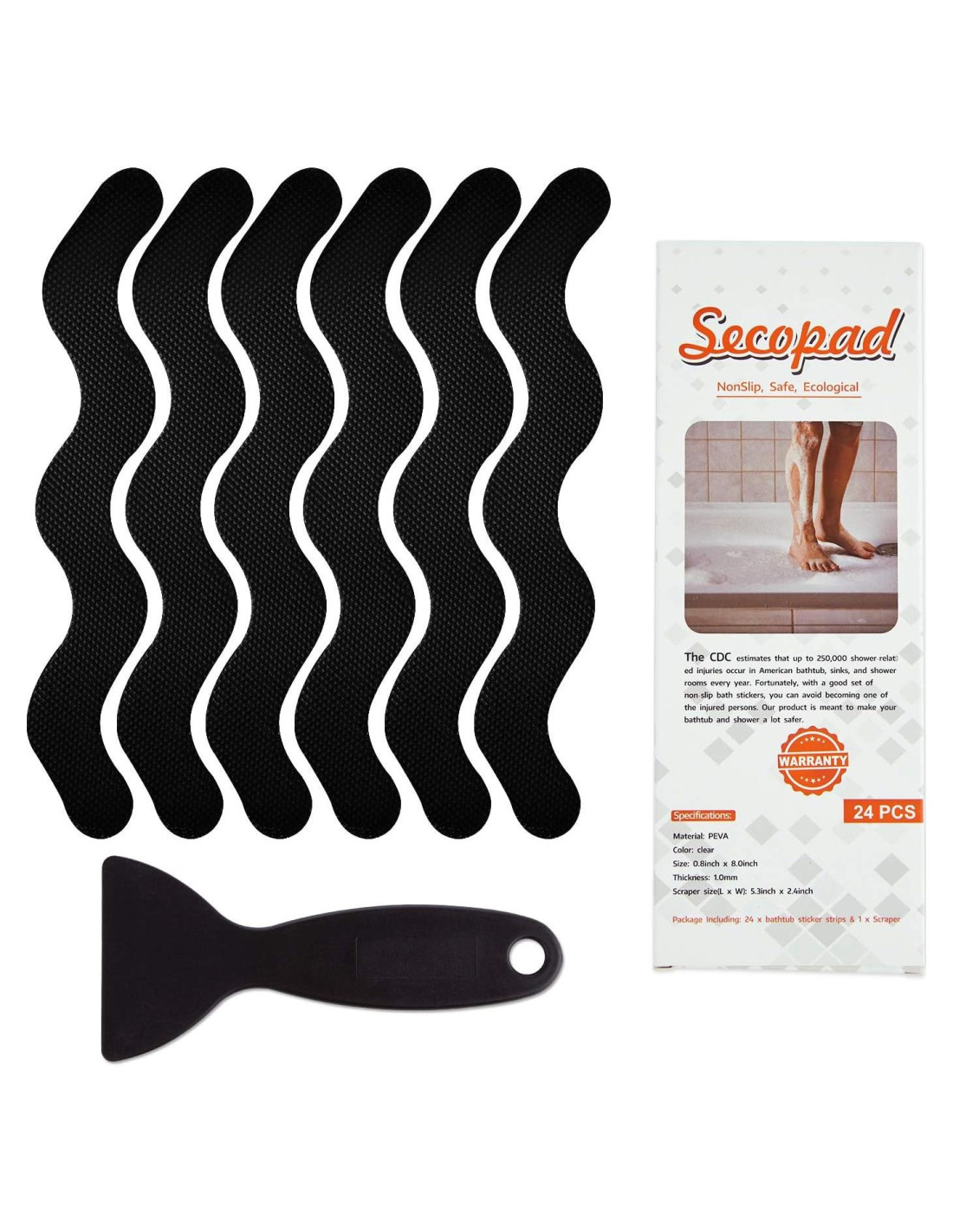 - El paquete comprende 24 piezas (2.03 x 20.07 cm) de pegatinas transparentes junto con 1 raspador de silicona de alta calidad. Idealmente, las 24 pegatinas pueden ocupar la mayor parte de la superficie de la bañera, reduciendo así el riesgo de resbalones accidentales. Además, incluso puedes usar estas pegatinas en las escaleras para hacerlas mucho más seguras.