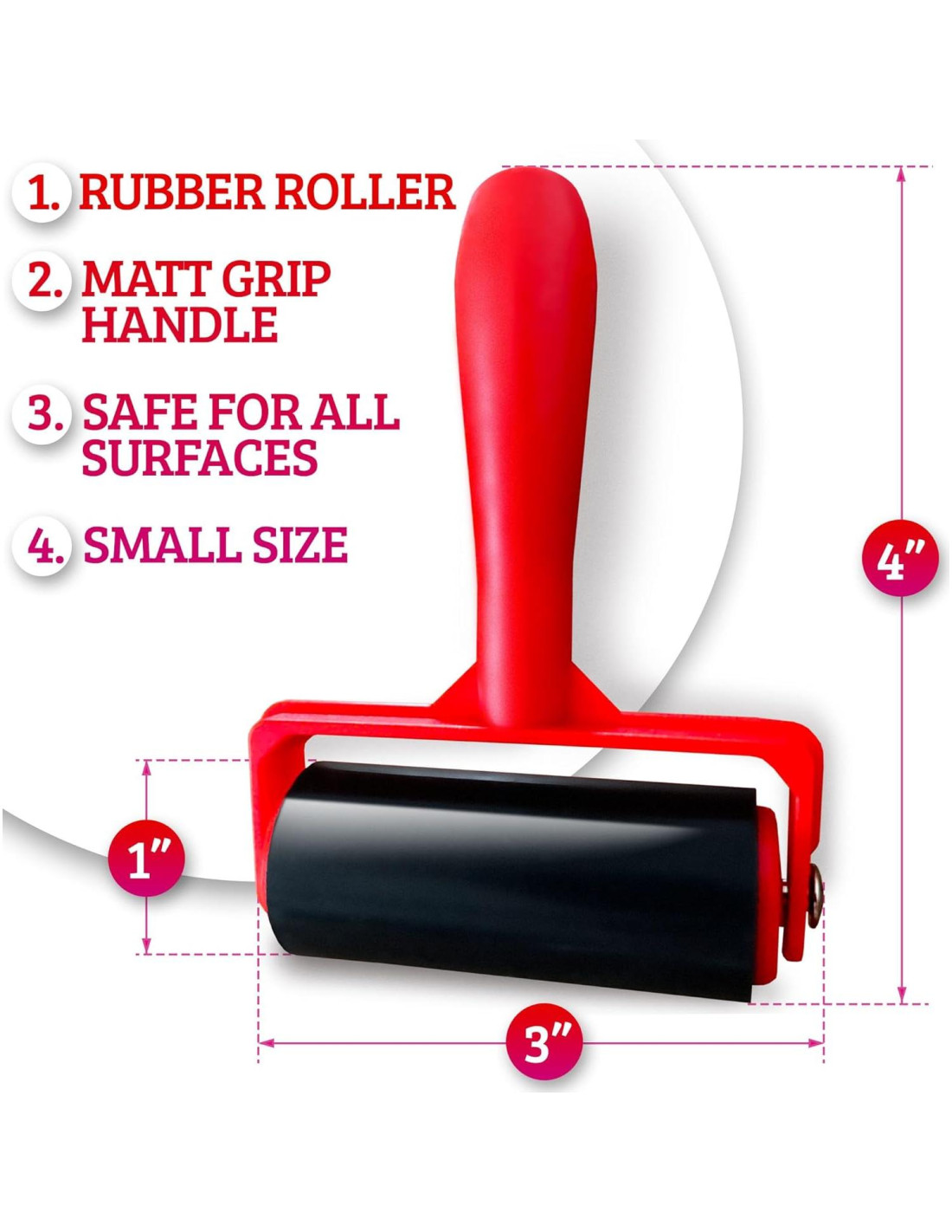 - Características: El rodillo está hecho de goma de alta calidad. Es fuerte y elástico. El mango está hecho de plástico ABS duradero y tiene un mango ergonómico antideslizante