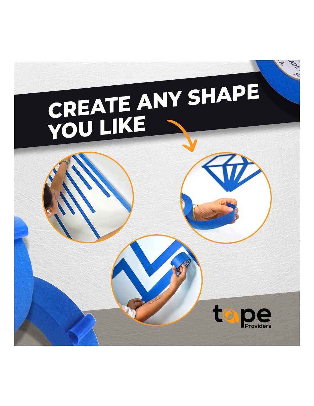 - Cinta de Enmascarar de Alto Rendimiento - Su sistema de adhesivo de goma especialmente formulado está diseñado para adherirse firmemente a múltiples superficies, como paredes planas, lisas o ligeramente texturizadas, madera, marcos de ventanas de metal, zócalos, vidrio, azulejos o pisos de madera dura. No se secará ni perderá su poder de sujeción.