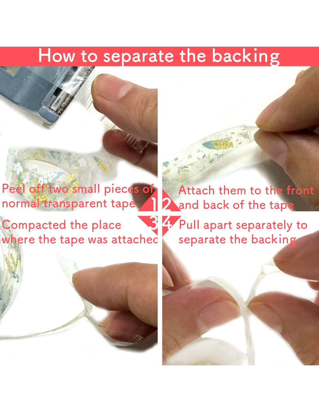 - [NO ES RIBBON] Estas cintas tienen el papel de liberación transparente en la parte posterior, puedes usarlas como cintas, si necesitas cintas autoadhesivas, quita la parte posterior transparente y obtendrás las cintas pegajosas. Consulta las imágenes para ver cómo despegar la parte posterior fácilmente.