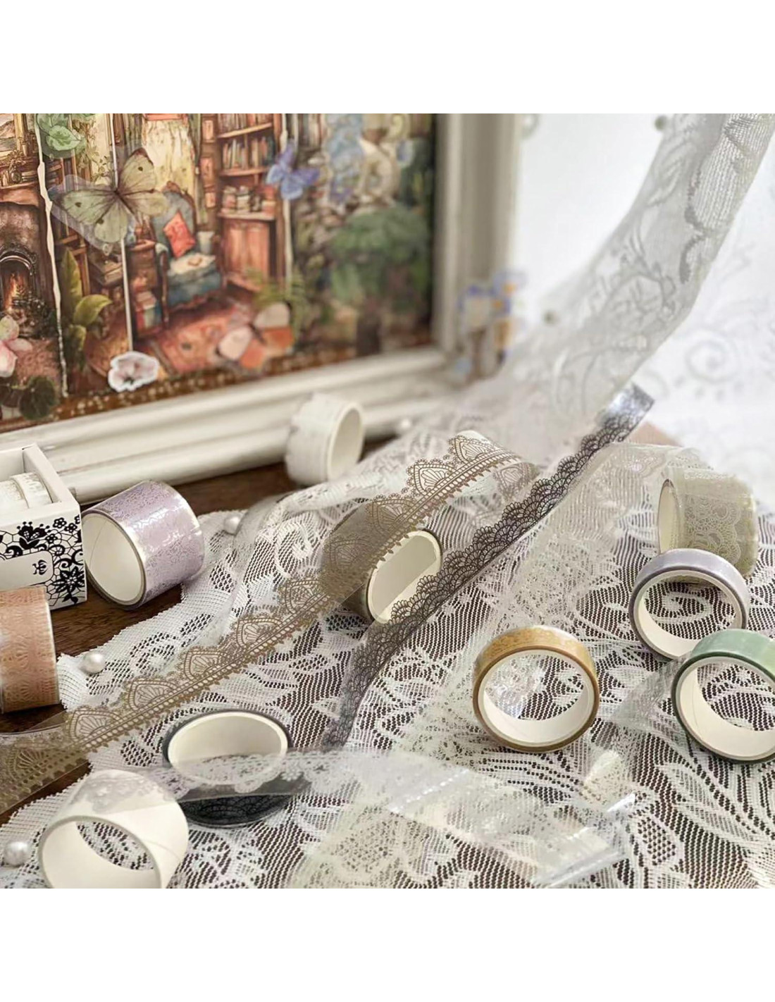 - [DISEÑO ELEGANTE] Esta cinta washi de encaje presenta un material base de PET transparente delicadamente impreso con varios patrones de encaje. ¡Son increíblemente hermosos y adecuados para varios propósitos decorativos, harán que tus obras estén llenas de vitalidad!