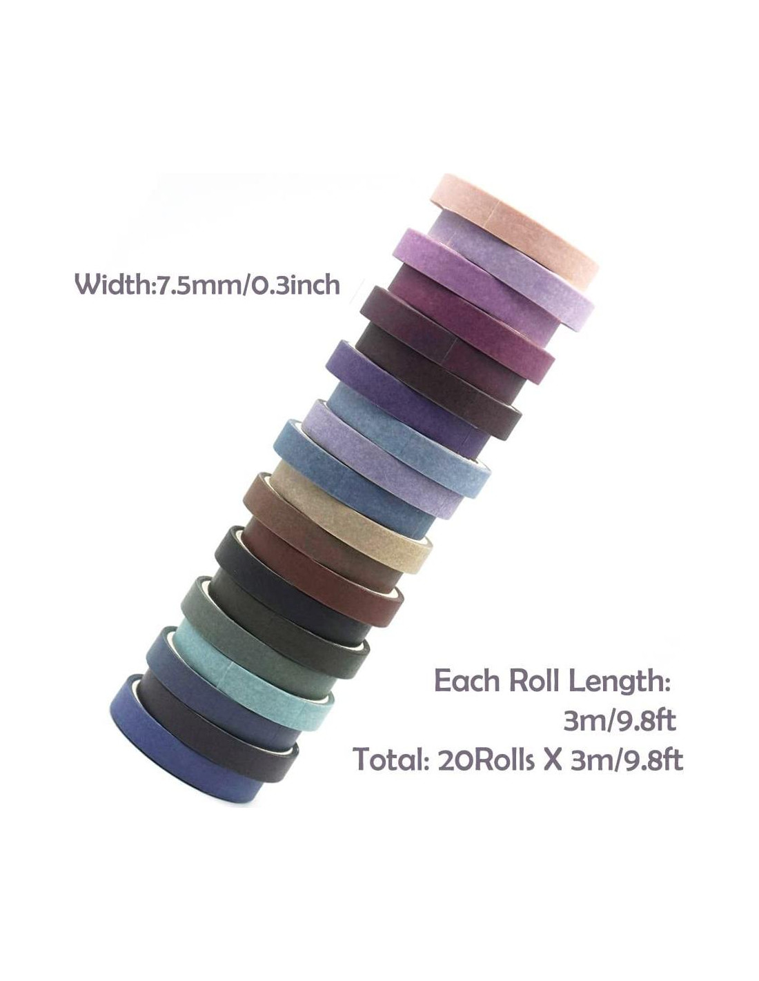 - Juego de 20 Rollos de Cinta Washi - Cada rollo de cinta washi tiene 7.5mm (0.3 pulgadas) de ancho, 3 metros (9.84 pies) de largo