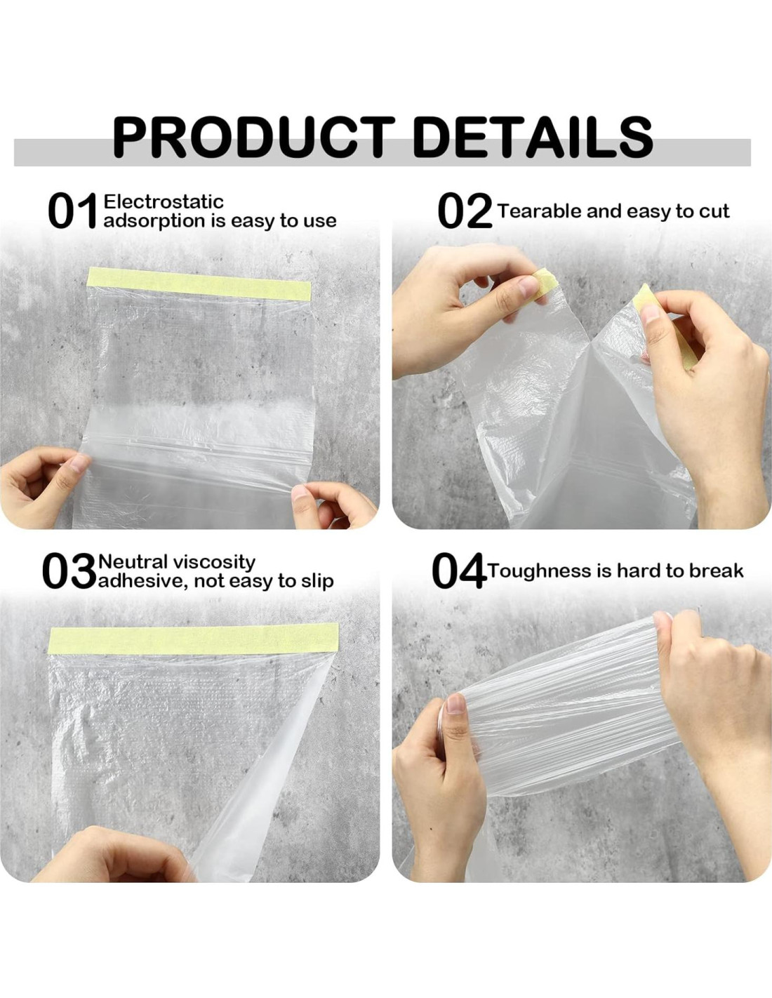 - Amplia Aplicación: la película de plástico ligera es conveniente de llevar, y no ocupa demasiado espacio, puede ser utilizada para cubrir equipos y proteger electrodomésticos al pintar automóviles, mejoras en el hogar, limpieza de muebles y más