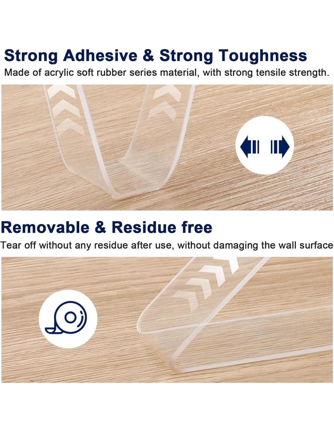 - Transparente sin trazas La cinta adhesiva utiliza nueva tecnología nano y materiales adaptativos, puede adherirse firmemente a la mayoría de las superficies. La cinta transparente de doble cara es fácil de quitar sin dañar la pared o superficie, y no deja residuos ni marcas de pegamento.