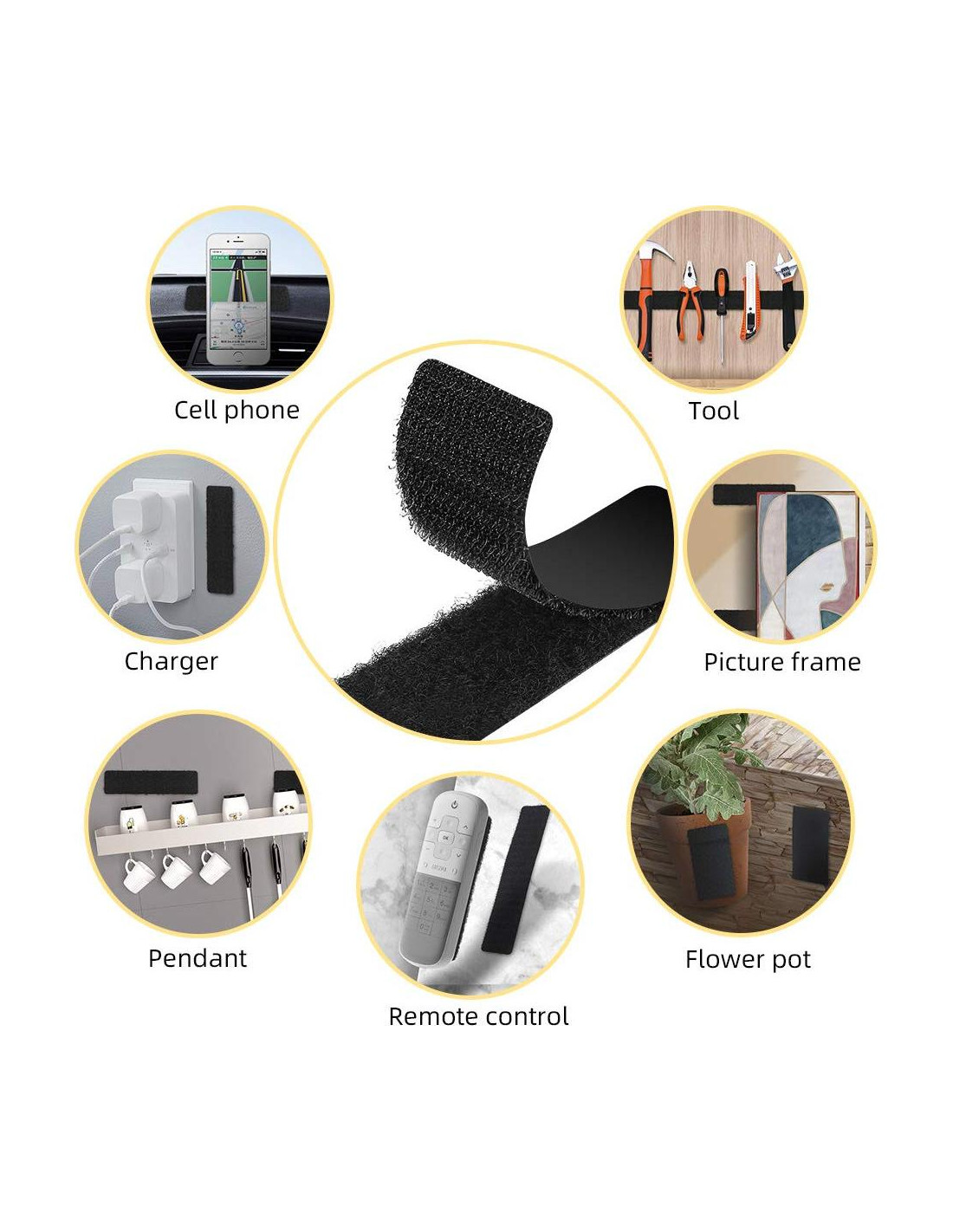 - ADHESIVO PEGAJOSO: Las tiras negras con gancho y bucle con adhesivo proporcionan una gran resistencia. Después de pegar, no las cargue, el efecto del pegamento se maximizará después de 24 horas.