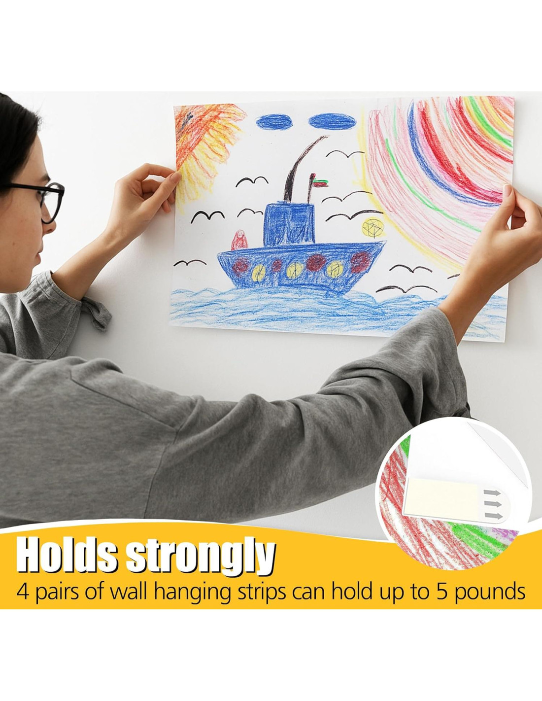 - 4 pares de tiras para colgar en la pared pueden soportar hasta 2.27 kilogramos, lo que facilita colgar varios artículos pequeños a medianos como marcos de fotos, arte decorativo, carteles y decoraciones de pared