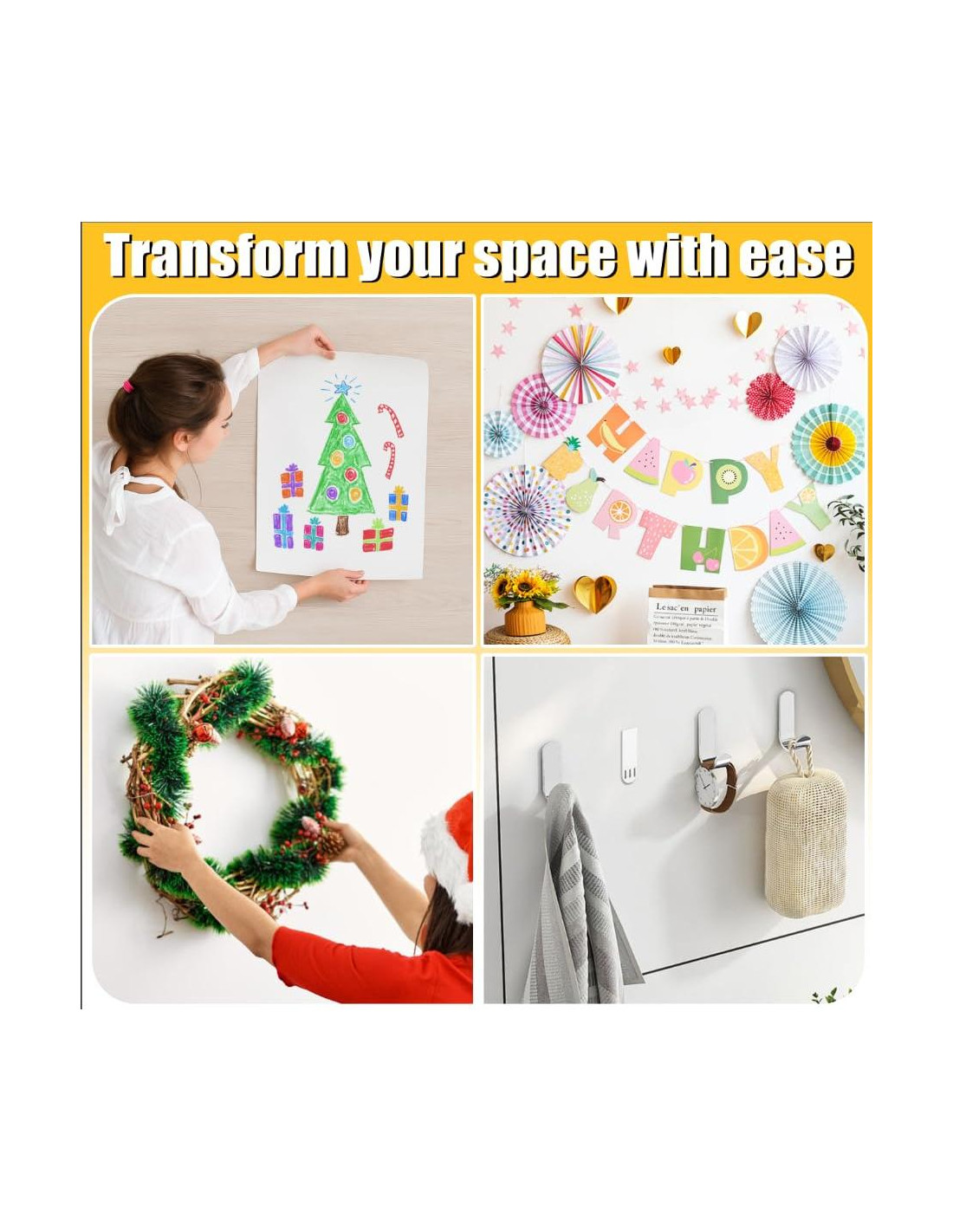 - Con tiras de reemplazo, puedes volver a colgar o mover fácilmente ganchos interiores a nuevas ubicaciones, haciendo que la decoración de tu hogar sea más flexible y ordenada mientras mantienes tus paredes intactas y sin daños
