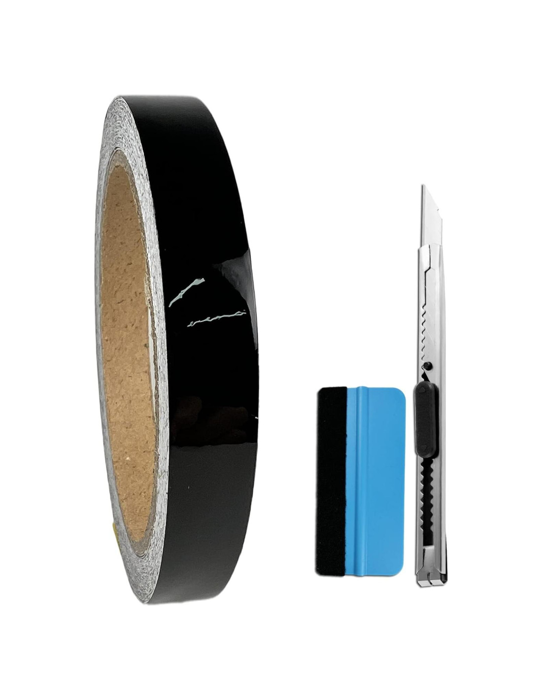 - Consejos Útiles: 1. Hay una película protectora transparente en la superficie de la cinta negra brillante, por favor retírala después de la instalación. 2. La cinta negra brillante también se puede instalar usando 3M 94 Primer y 3M Edge sealer, estos no son obligatorios, estos productos promoverán la adhesión y agregarán vida a tu vinilo.