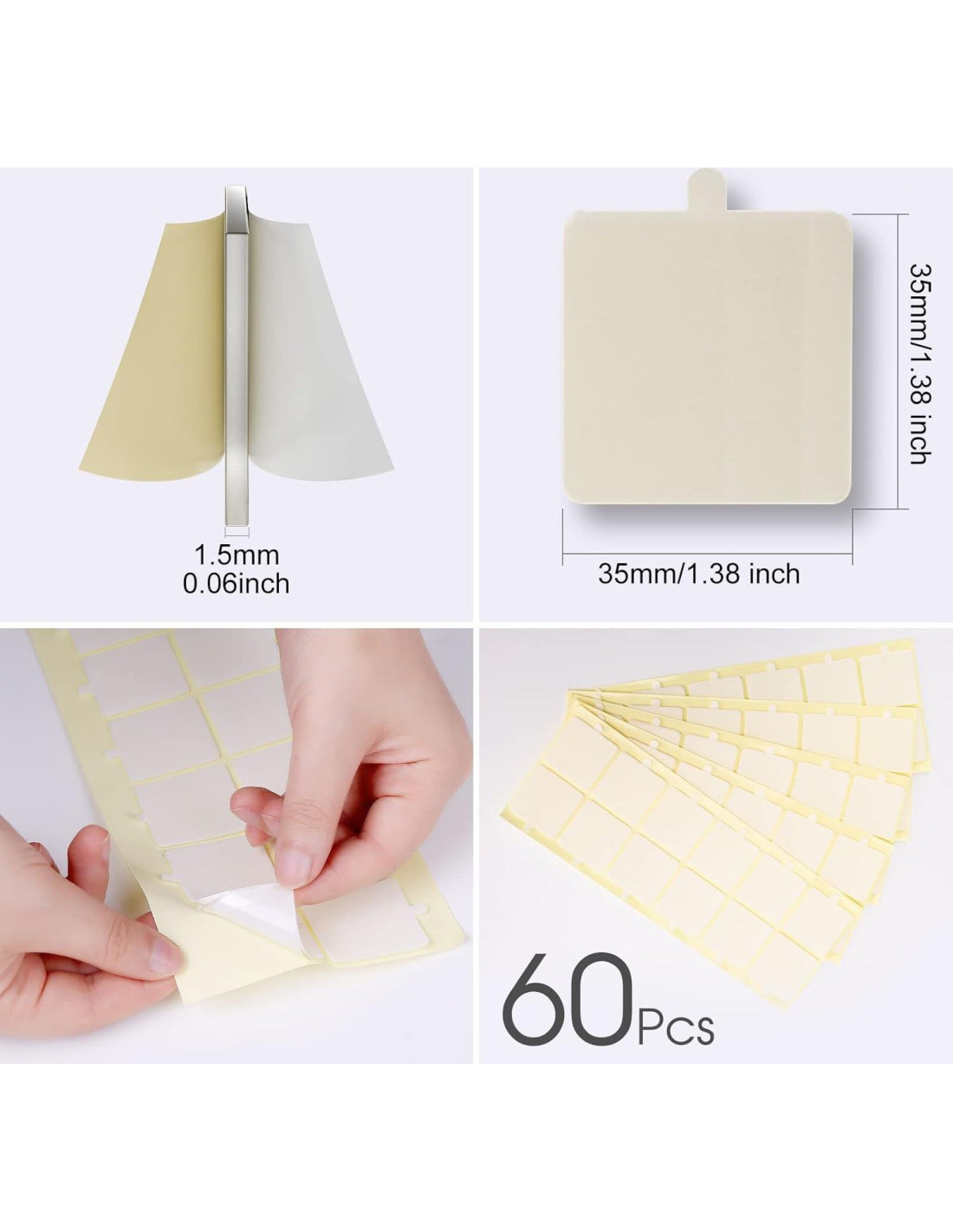 - [Incluye 60 cuadrados] Tamaño - 1.4 x 1.4 pulgadas (35x35mm); Grosor: 0.06 pulgadas (15mm). 60 cuadrados pueden montar 15 o 12 paneles acústicos.