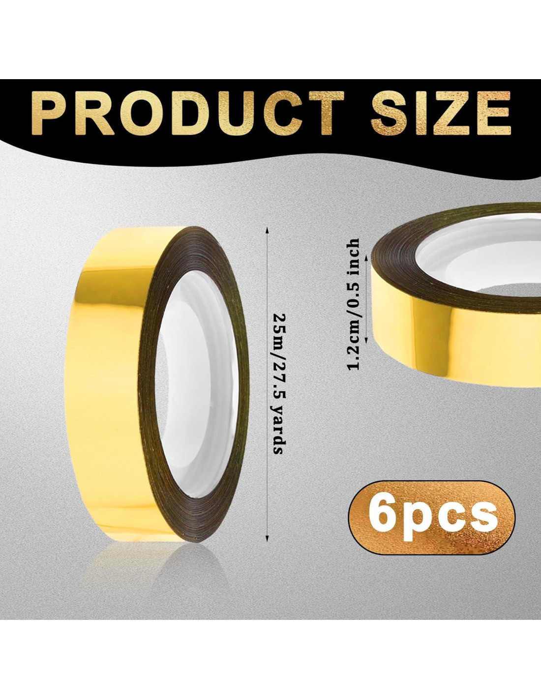 - Incluye el paquete: Obtén 6 rollos de cinta dorada, cada uno mide 27.5 yardas (25m) de largo y 0.5 pulgadas (1.2cm) de ancho. Perfecto para envolver regalos, decoración del hogar y proyectos creativos