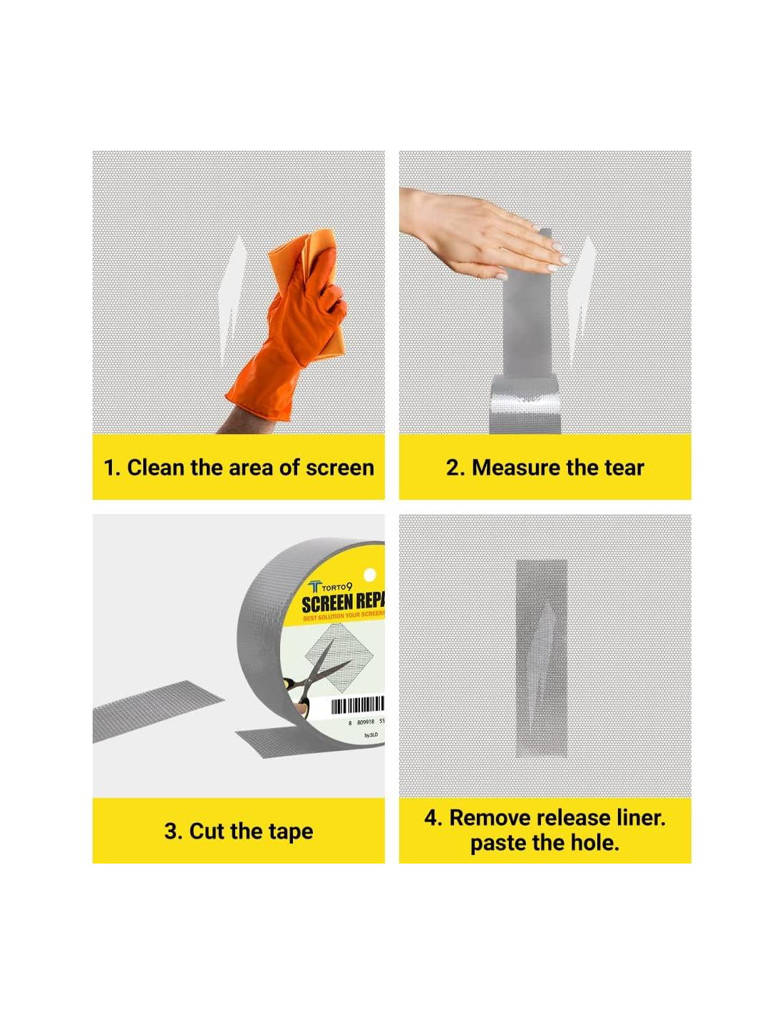 - La cinta de reparación de pantallas TORTO9 se puede cortar y usar adecuadamente según el tamaño de la rasgadura.