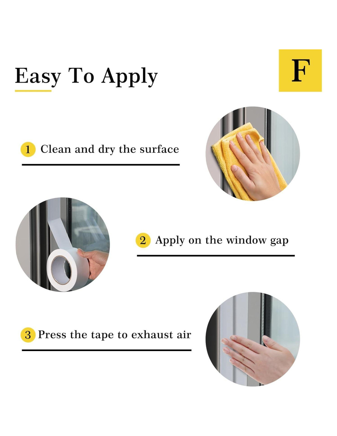 - Fácil de Usar: Solo limpie y seque la superficie, aplique la cinta en la grieta de la ventana y presiónela para expulsar el aire