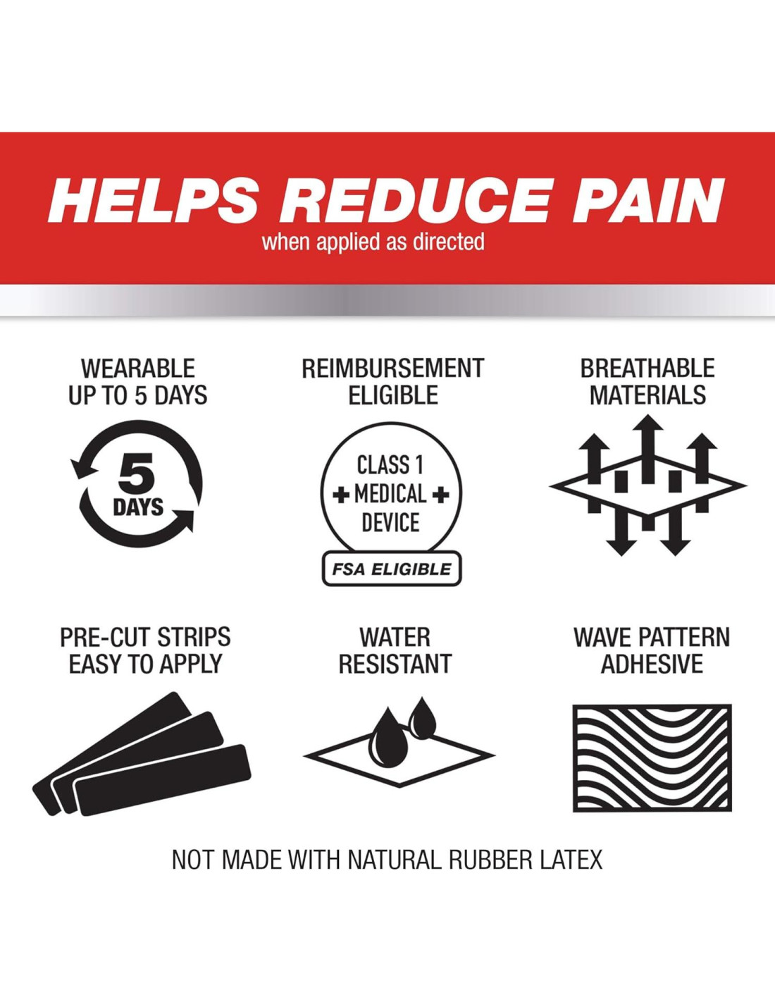 - DURACIÓN DE HASTA 5 DÍAS: Diseñada para adherirse cómodamente hasta cinco días consecutivos, permitiéndole moverse libremente y reducir el dolor en el proceso
