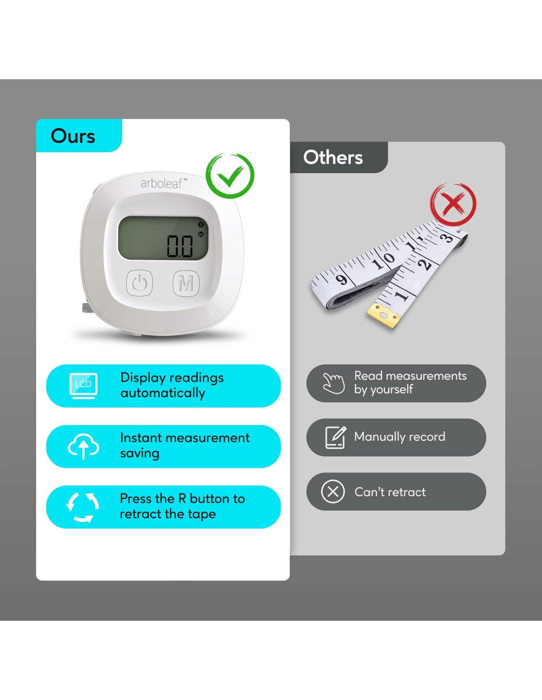 - Portátil y conveniente: La cinta métrica digital para el cuerpo arboleaf está diseñada para ser ligera y compacta, permitiéndote llevarla sin esfuerzo en tu bolsa de gimnasio o equipaje. Dondequiera que vayas, puedes medir y rastrear fácilmente los cambios en tu cuerpo sobre la marcha, asegurando que te mantengas al tanto de tus objetivos de fitness.