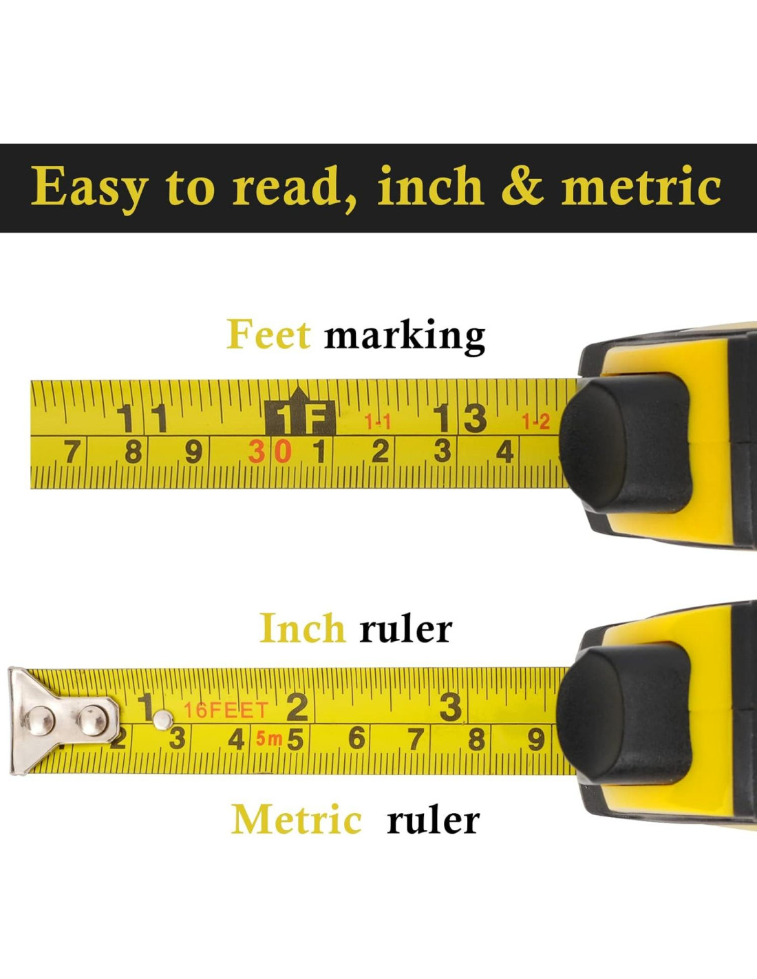 - HACER QUE MEDIR SEA FÁCIL - Esta cinta métrica de 16 Pies (5 Metros) es fuerte y duradera, Escala en Pulgadas/Métrico, Precisión MID, lo que la convierte en esencial para todos, desde propietarios de viviendas hasta diseñadores de interiores, hasta profesionales de la construcción, carpinteros, trabajadores de metal o madera y arquitectos.