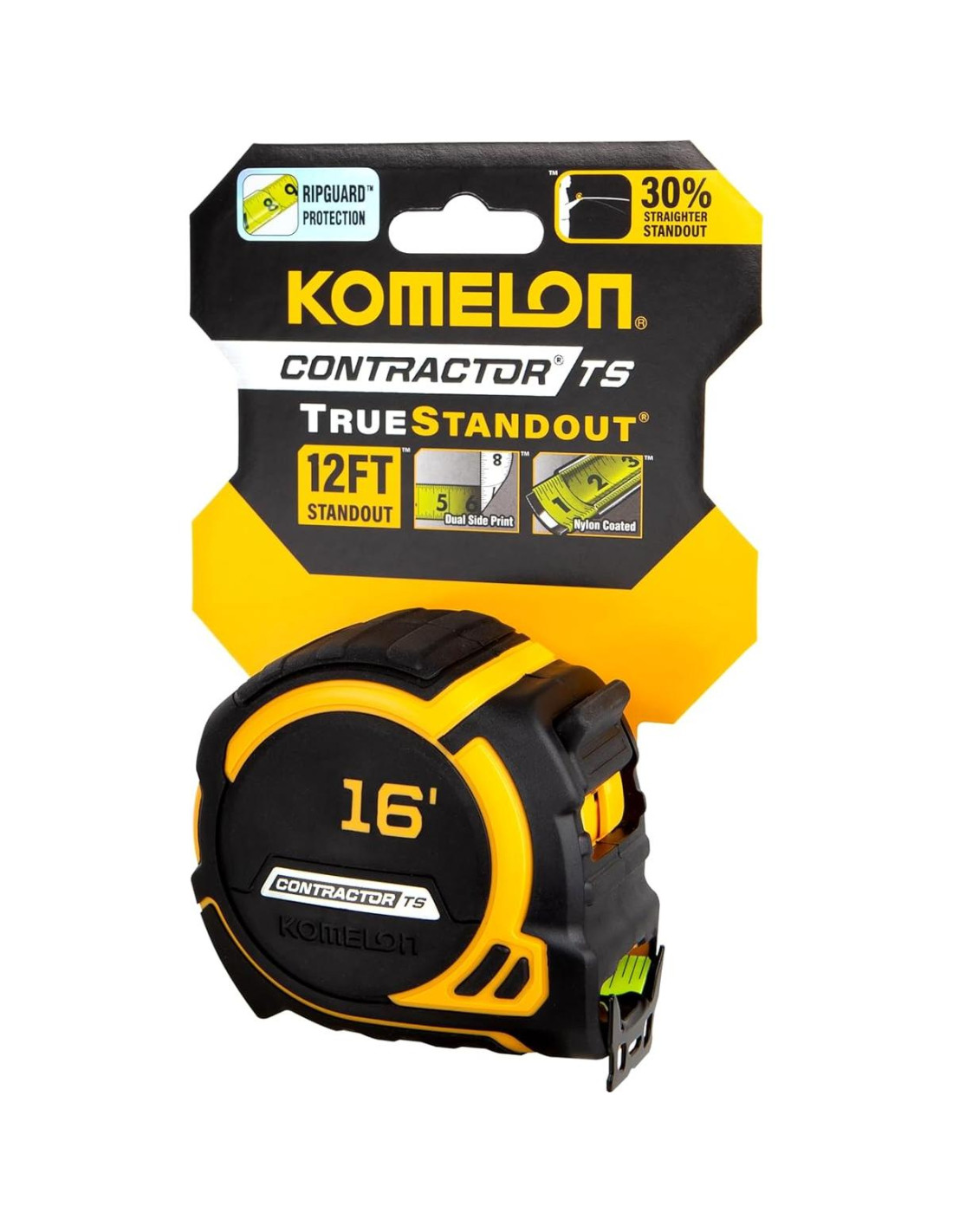 El Contractor TS es la primera cinta métrica de cuchilla ancha de 1 1/4in. (3.18 cm) creada por KOMELON. Su caja compacta es ergonómica y se adapta cómodamente a tu mano. La cuchilla recubierta de nylon está hecha para durar y es resistente al desgaste. Por último, pero no menos importante, son 3.66 m (12ft.) de verdadera distancia de medida, proporcionando un uso más recto y preciso de la distancia de medida en cualquier lugar de trabajo.