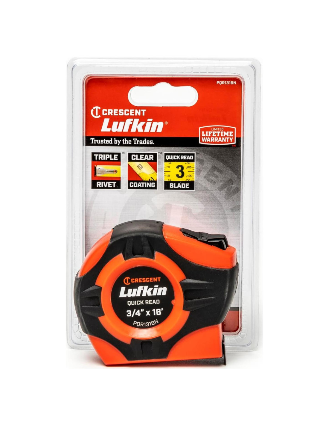 - Cinta Lufkin PQR1316N Quickread Power Return, 3/4-pulgada por 4.88 m, Naranja de alta visibilidad