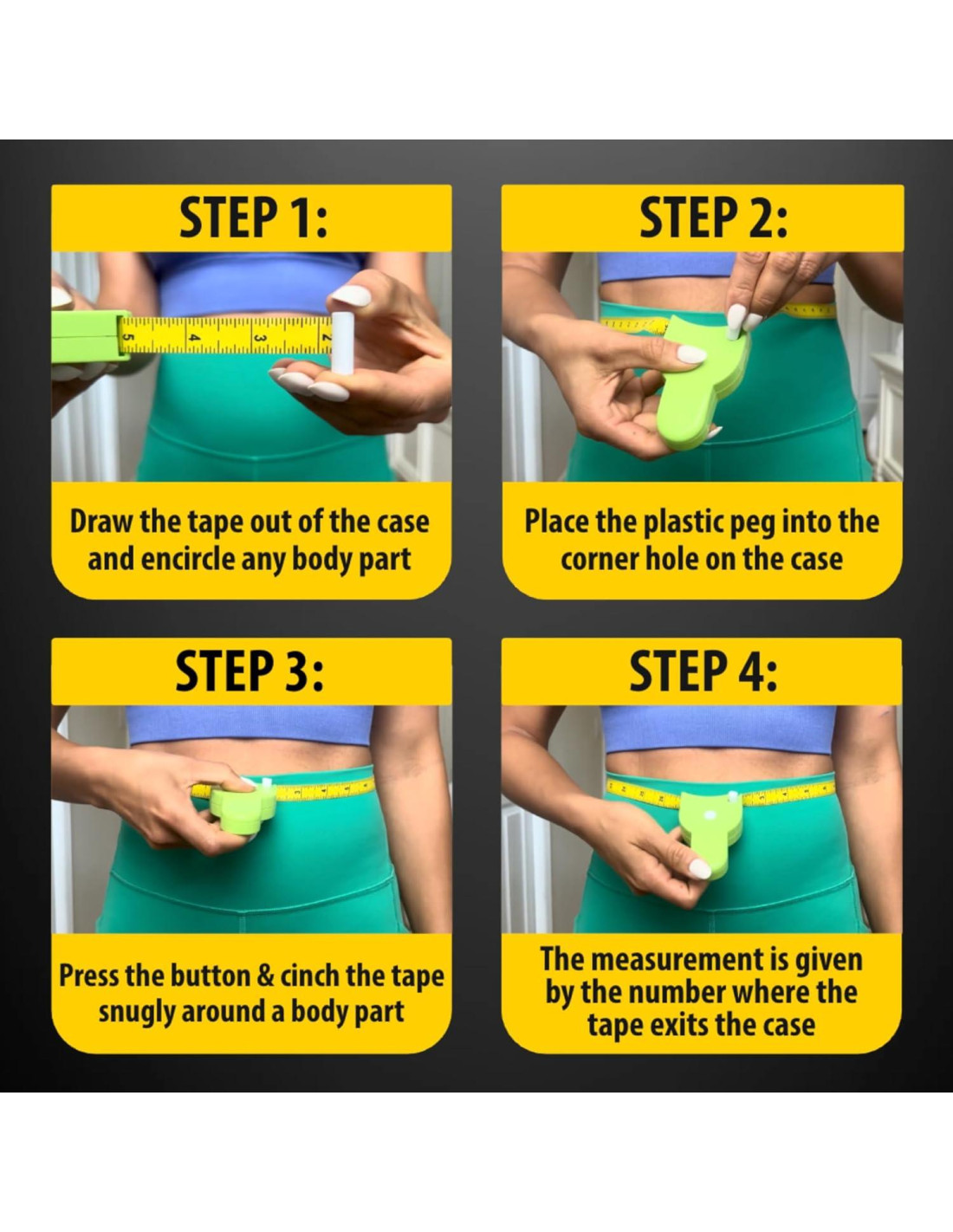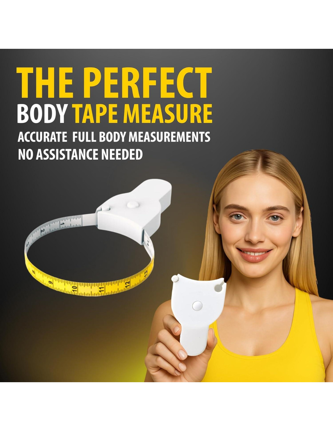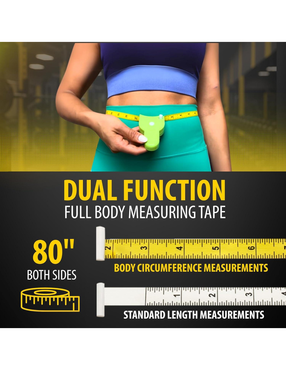 - CINTA MÉTRICA DE CUERPO DE COLOR DUAL / FUNCIÓN DUAL - La única cinta para el cuerpo con un lado amarillo dedicado para una medición de circunferencia sin errores. El lado amarillo calcula automáticamente la circunferencia del cuerpo sin necesidad de sumar o restar por su parte.