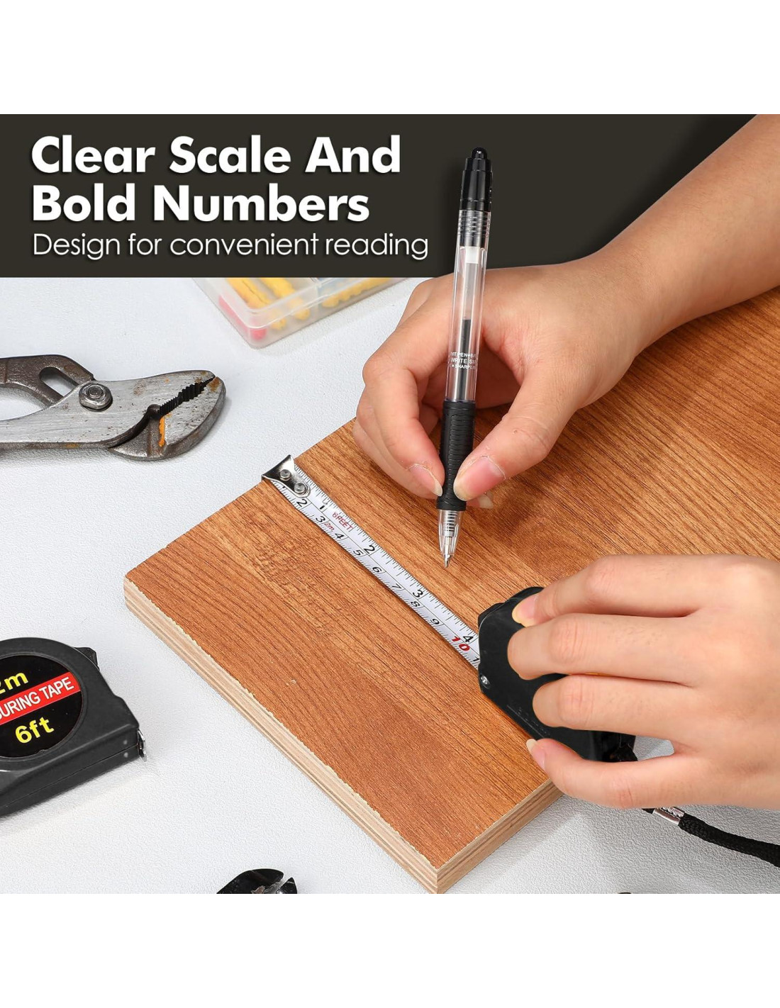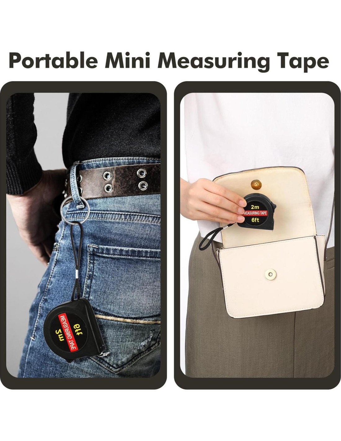 - Calidad Confiable: la cinta métrica fuerte y duradera tiene un agarre firme con una caja de ABS de goma antideslizante; Su diseño conveniente para un mejor ajuste en la mano durante la medición; La cinta métrica con llavero tiene una hoja flexible de polímero de nylon que resiste el óxido y la corrosión con un robusto bloqueo deslizante de metal que mantiene la pequeña cinta de medición de forma segura en posición, y se retrae suavemente cada vez que sueltas el bloqueo
