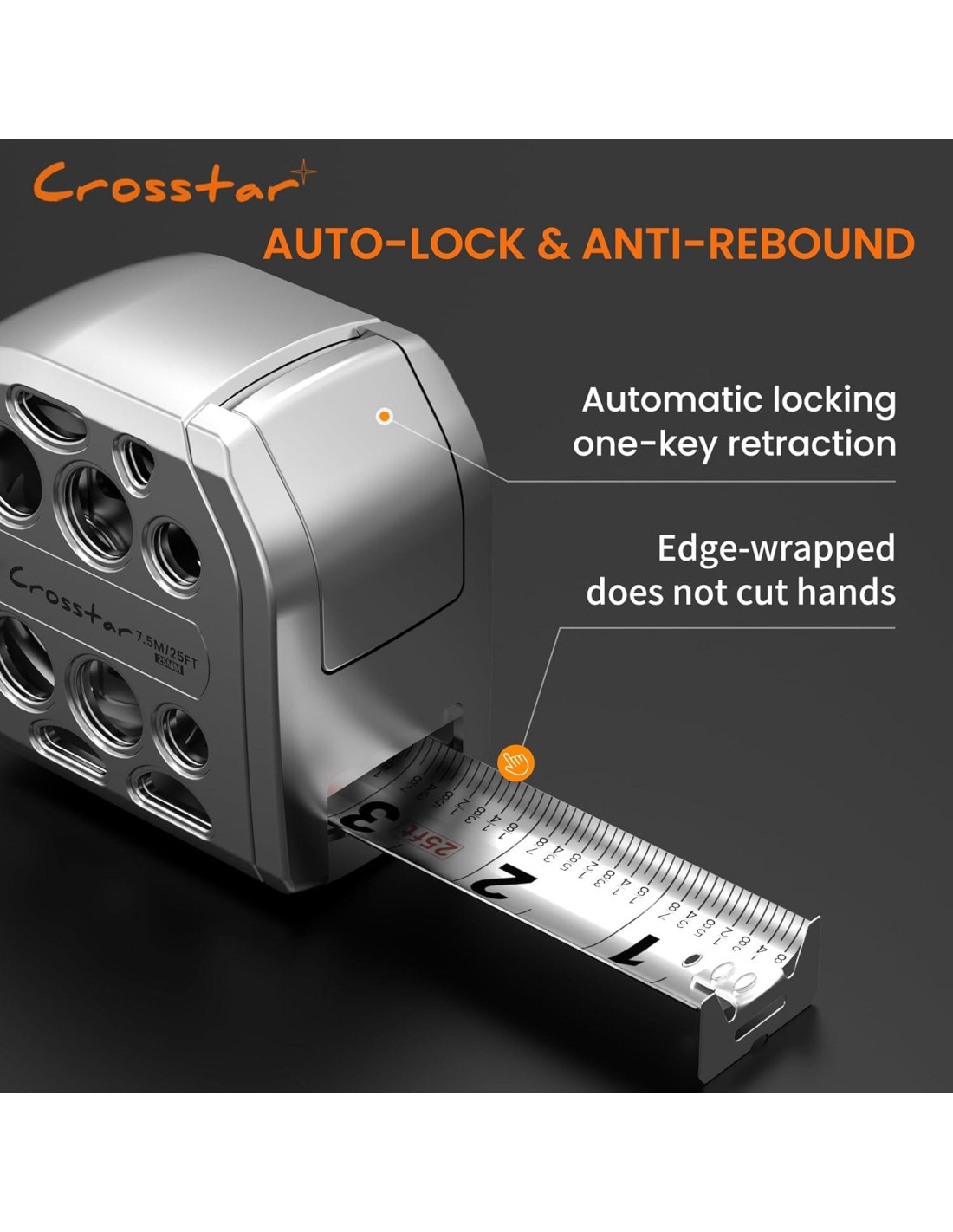 - Precisión de Grado Profesional para Cada Usuario. Las escalas verificadas por láser aseguran precisión de +/-1/16" (+/-1,59 mm), probadas en fábrica para perfección. Ideal para contratistas, aficionados al bricolaje y entusiastas que abordan renovaciones del hogar, trabajos en metal o manualidades. Incluye longitud de 25ft (7,62 m) + lo suficientemente duradera.