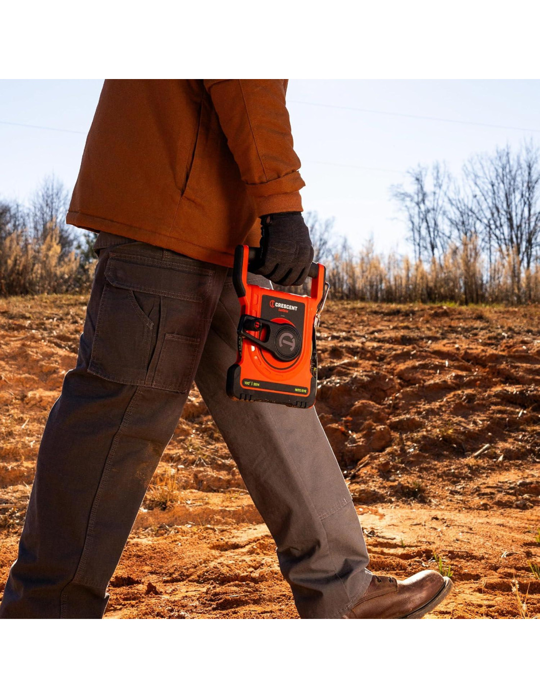 La Crescent 30M NITE EYE Cinta Larga de Fibra de Vidrio cuenta con una hoja NITE EYE de alto contraste en ambos lados, asegurando visibilidad en todas las condiciones de luz. El gancho final está diseñado con un muelle de almacenamiento incorporado, compatible con estacas de madera y varillas de refuerzo. Un rebobinado de 3 a 1 acelerará la retracción, eliminando el tedioso proceso de rebobinar una cinta larga. Todo esto se ajusta en un estuche que cuenta con una base plana que permite su colocación en el suelo, mejorando el equilibrio y la precisión.