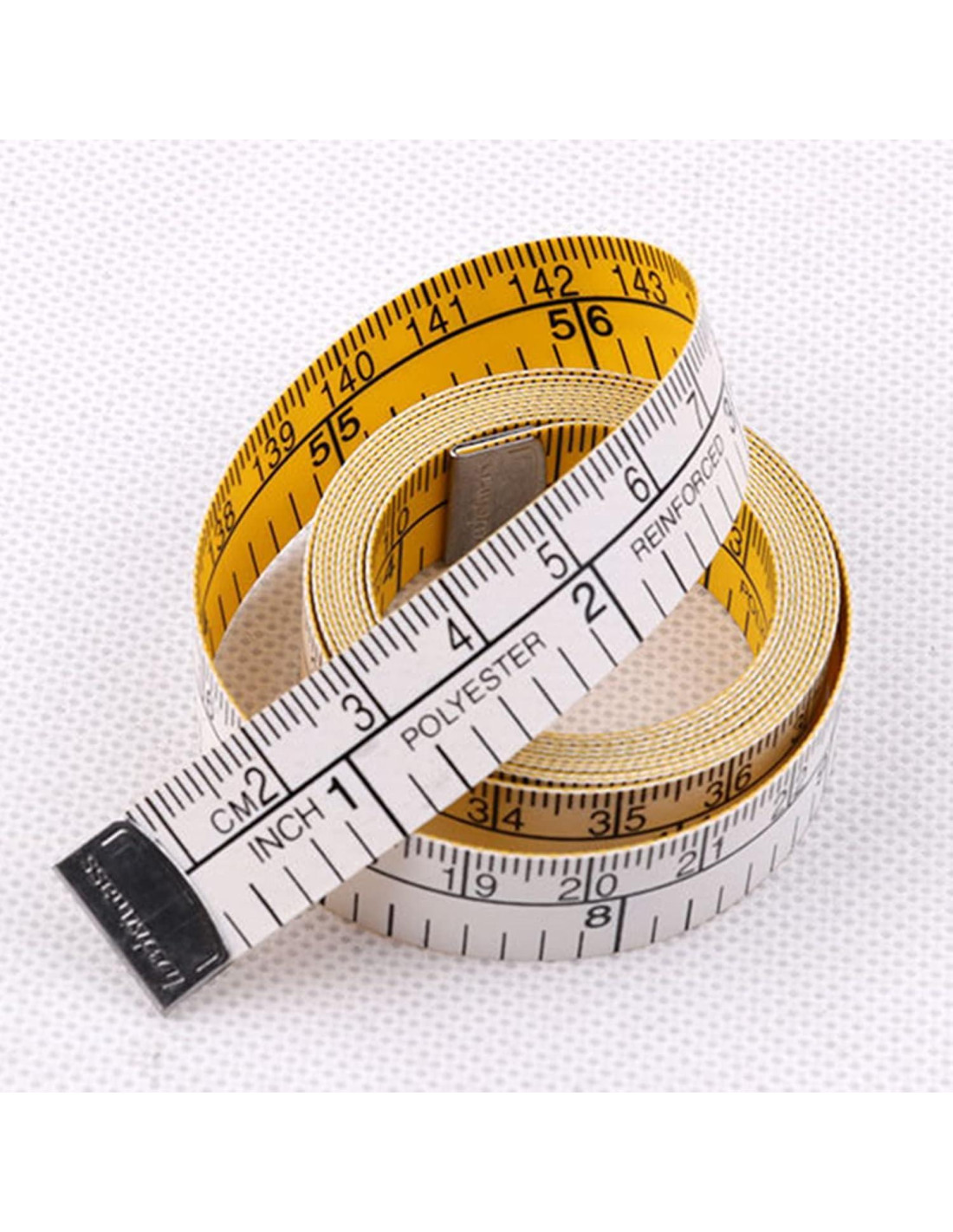 - Una cinta métrica flexible y portátil, hecha de material PU suave, color amarillo, adecuada para medir superficies planas curvas.