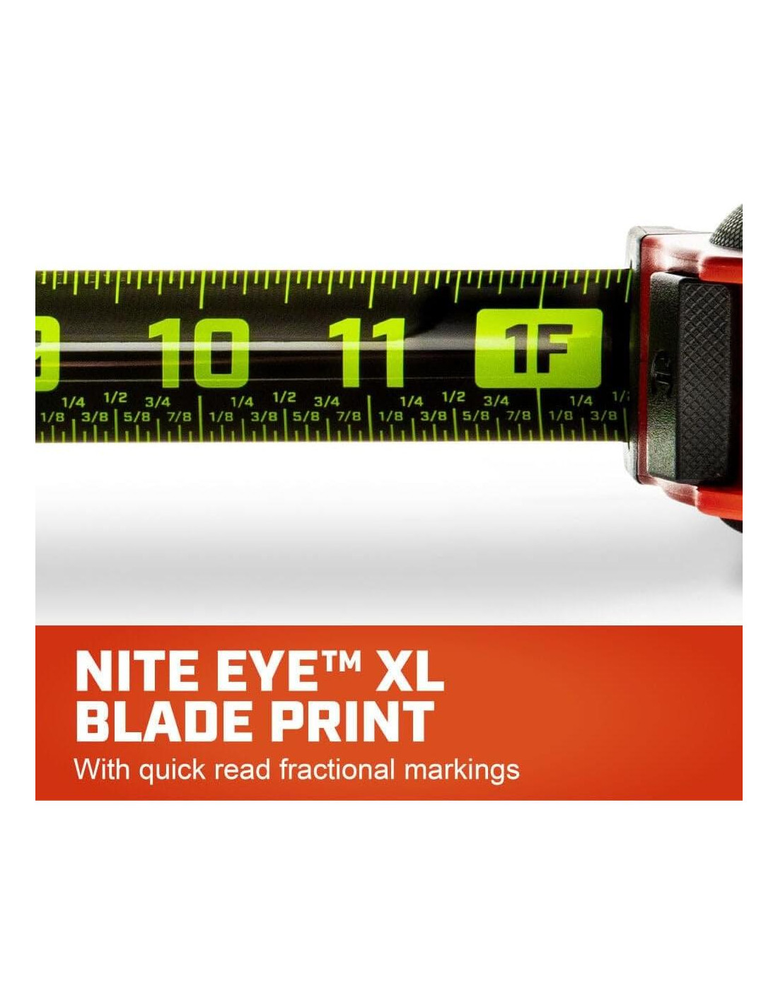 - Cinta NITE EYE de alto contraste con marcas XL proporciona visibilidad máxima, incluso en condiciones de poca luz.