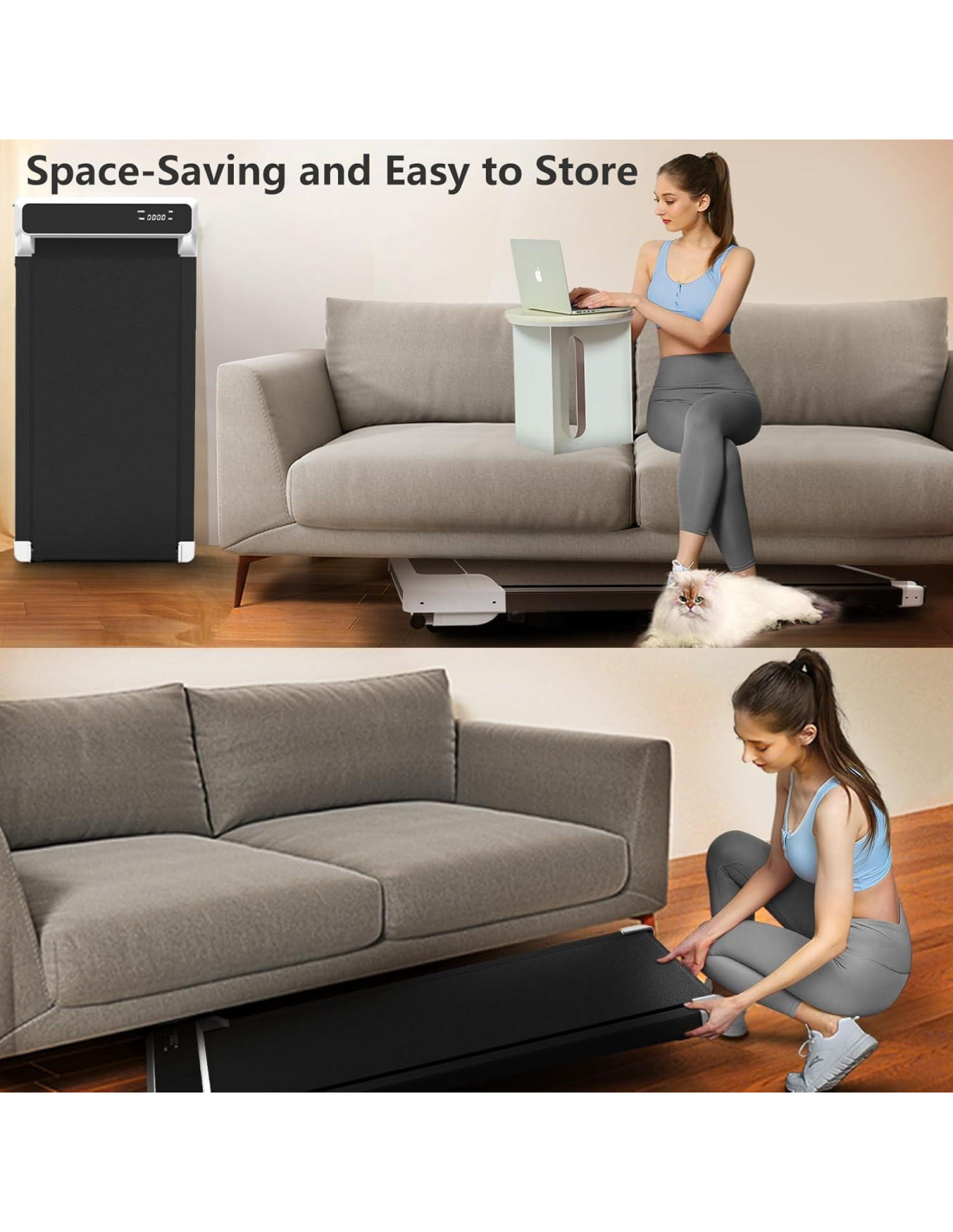 - [Diseño Compacto] Dimensiones de 46.4"D x 19.6"W x 4.5"H (118 x 49.8 x 11.4 cm), pesando 44 lbs (19.96 kg), con un área de superficie de carrera de 40"L x 16"W (101.6 x 40.6 cm) adecuada para uso bajo escritorio.