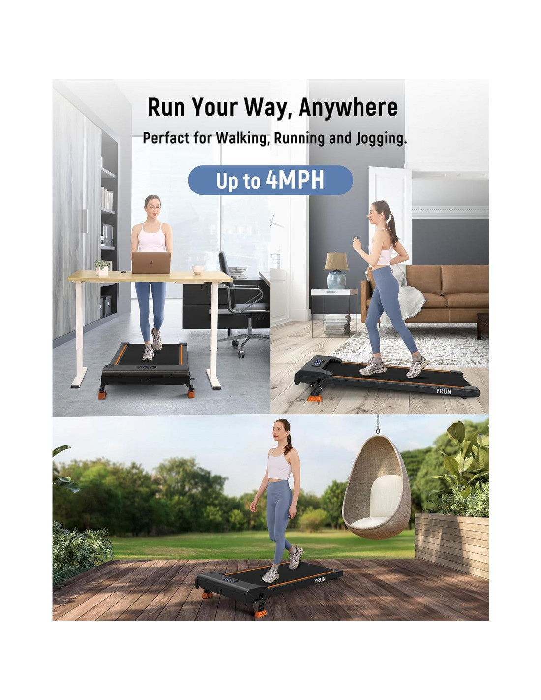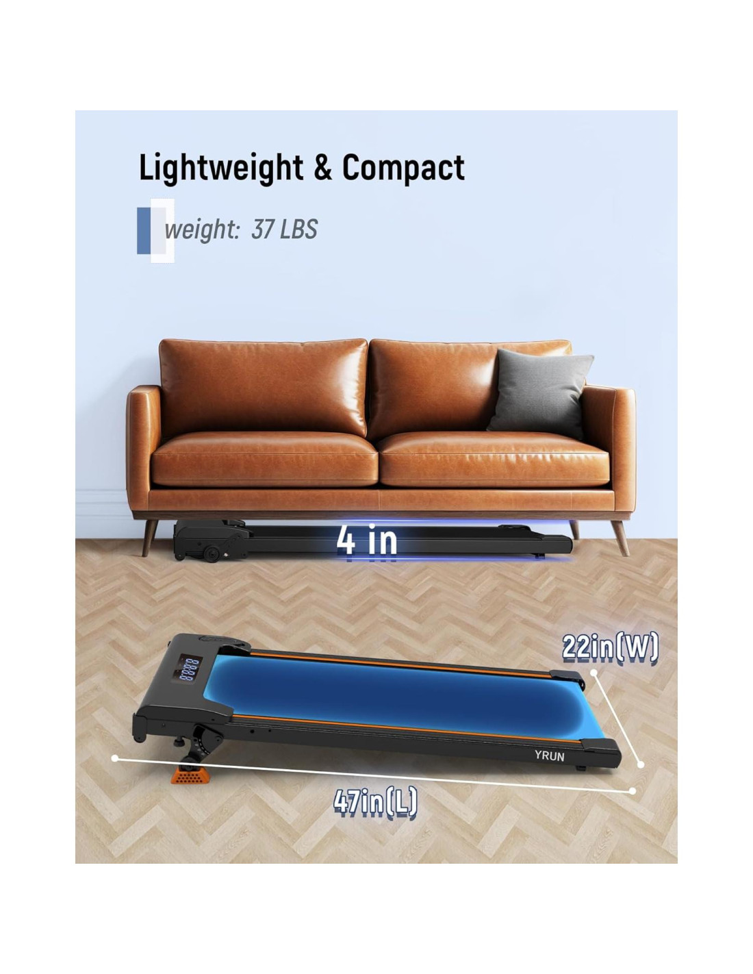 - Diseño Ligero y Portátil: Esta caminadora portátil es ligera con ruedas frontales para fácil movilidad y almacenamiento. Se ajusta convenientemente debajo del sofá, ideal para cualquier espacio en el hogar