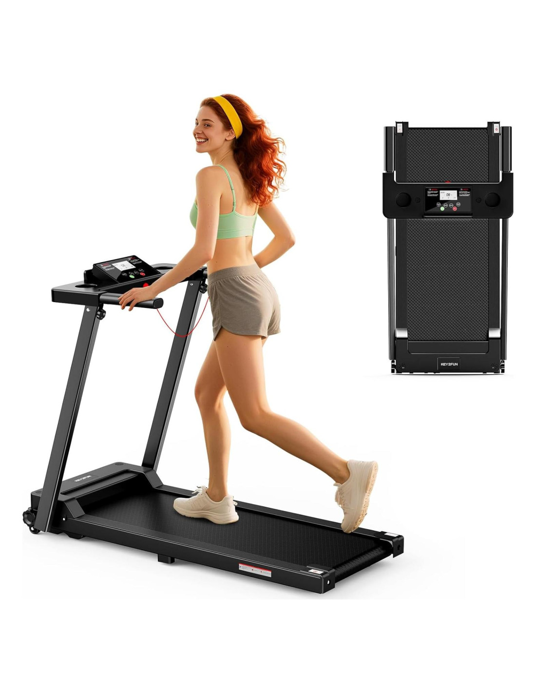 - [PANTALLA LED MULTIFUNCIONAL] : La caminadora portátil KEY2FUN cuenta con una pantalla LED multifuncional que muestra la velocidad, distancia, tiempo y gasto de calorías en tiempo real. Personaliza los modos de ejercicio de acuerdo con tu plan de entrenamiento para ejecutar eficazmente tus objetivos de fitness.
