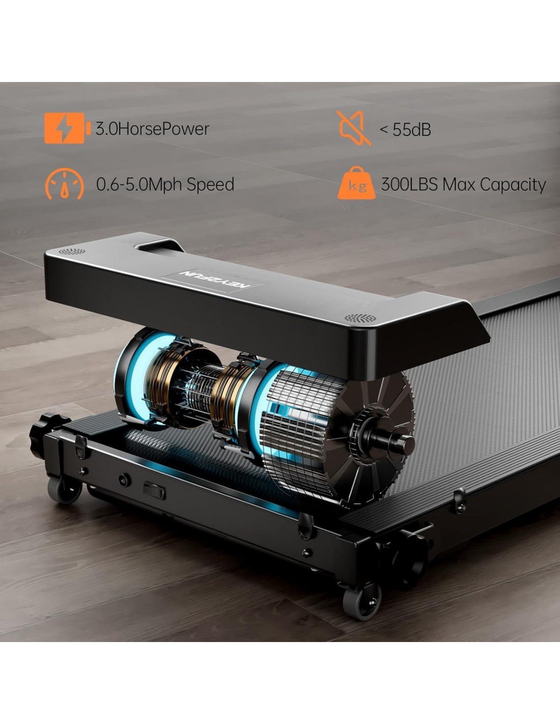 - [MOTOR PODEROSO DE 3.0 HP] : La caminadora KEY2FUN cuenta con un motor mejorado de 3.0 HP que ofrece un rendimiento robusto pero silencioso, con niveles de ruido por debajo de 55 DB. Mantiene una experiencia de carrera suave y continua incluso a altas velocidades. El rango de velocidad de 0.6-5 MPH (0.97-8.05 km/h) permite un cambio fluido entre los modos de caminar y correr para adaptarse a diversas necesidades de entrenamiento, mientras que su capacidad de peso de 300 LBS (136.08 kg) garantiza un ejercicio seguro.