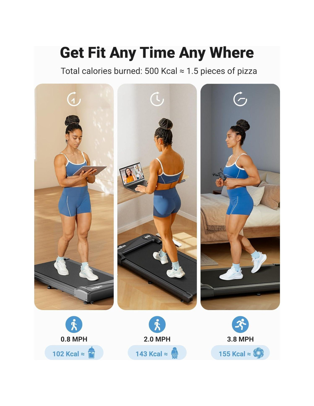 - Caminadora Bajo Escritorio 2 en 1: Hay 2 modos, se puede usar como una caminadora bajo escritorio al trabajar y se puede usar como una caminadora al caminar. El rango de velocidad de 0.6-3.8 MPH (0.97-6.12 km/h) te permite caminar o trotar y también te permite personalizar la intensidad de tu ejercicio según tu condición física y objetivos de fitness