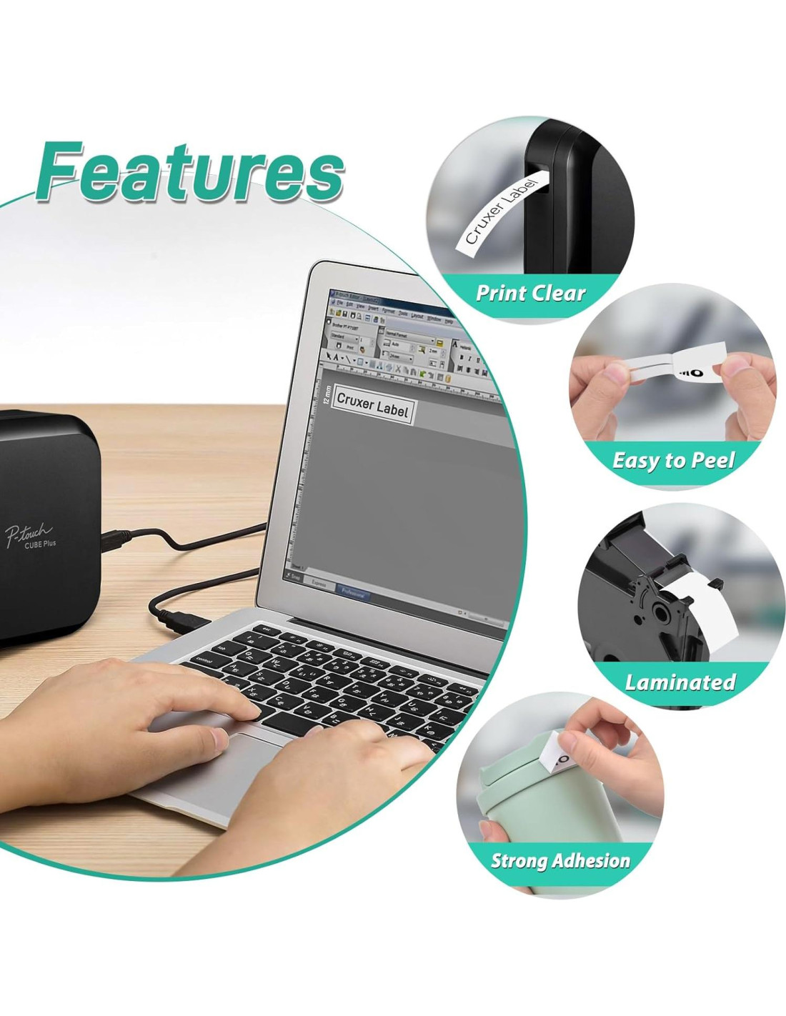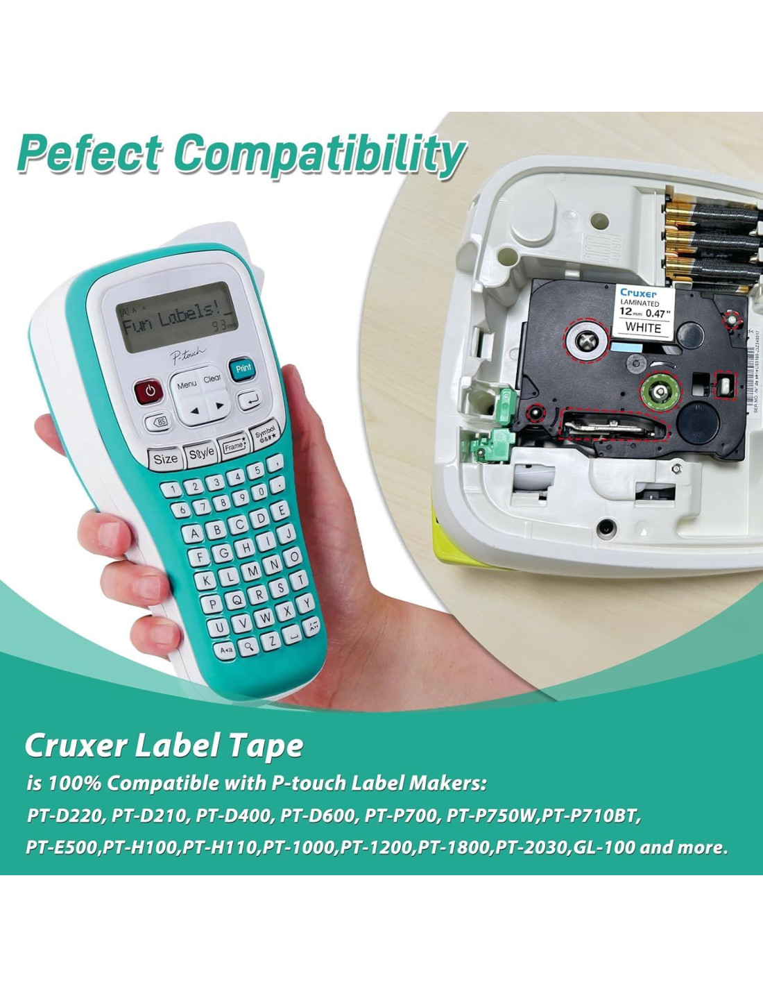 - Perfectamente compatible con impresoras de etiquetas p-touch como PT-H110, H100, D400 y más. Para más modelos, por favor consulta la lista a continuación.