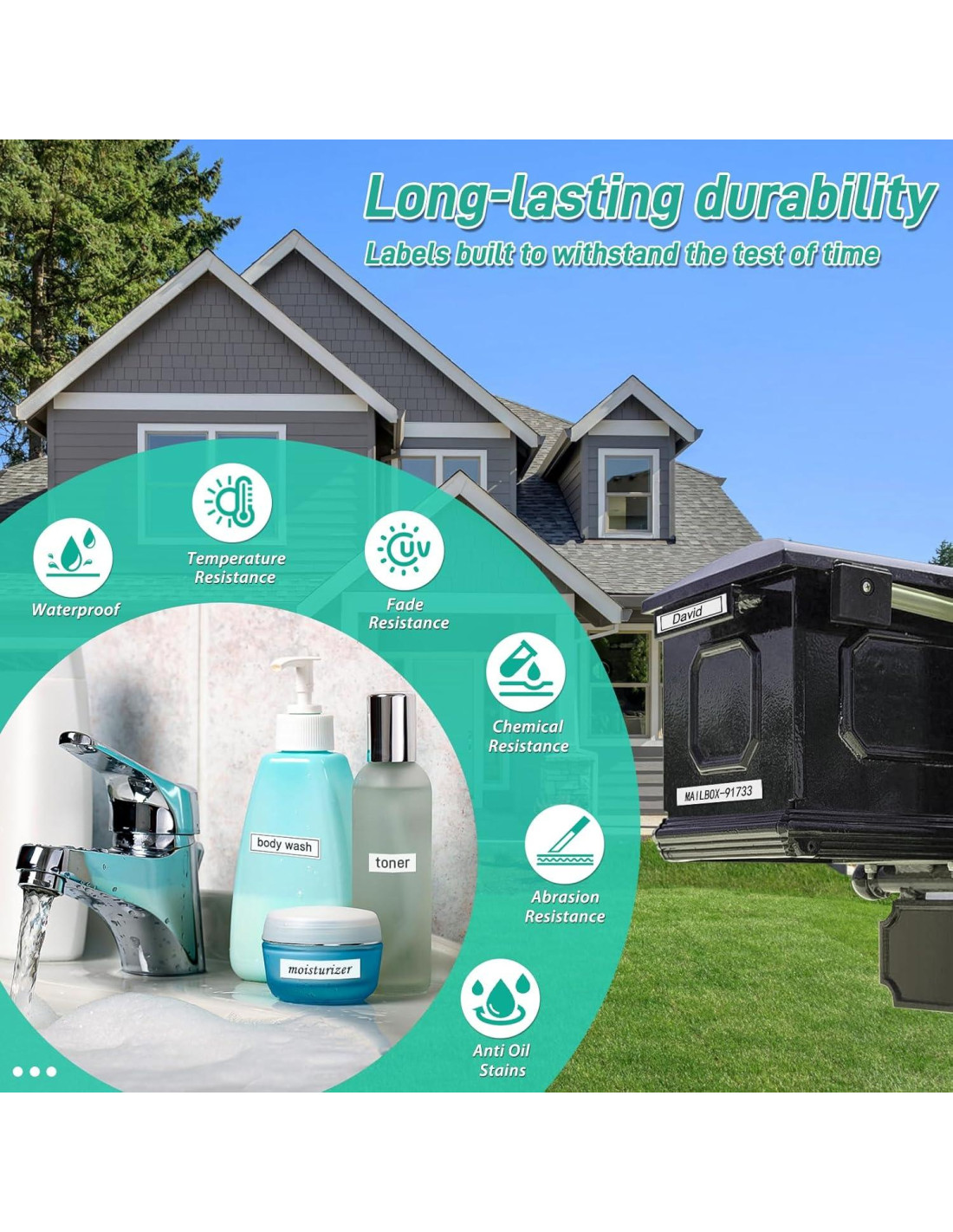 - Duradero: Las etiquetas Cruxer son resistentes al agua, desvanecimiento, abrasión, grasa, suciedad y temperatura, así como anti-UV y anti-corrosión.