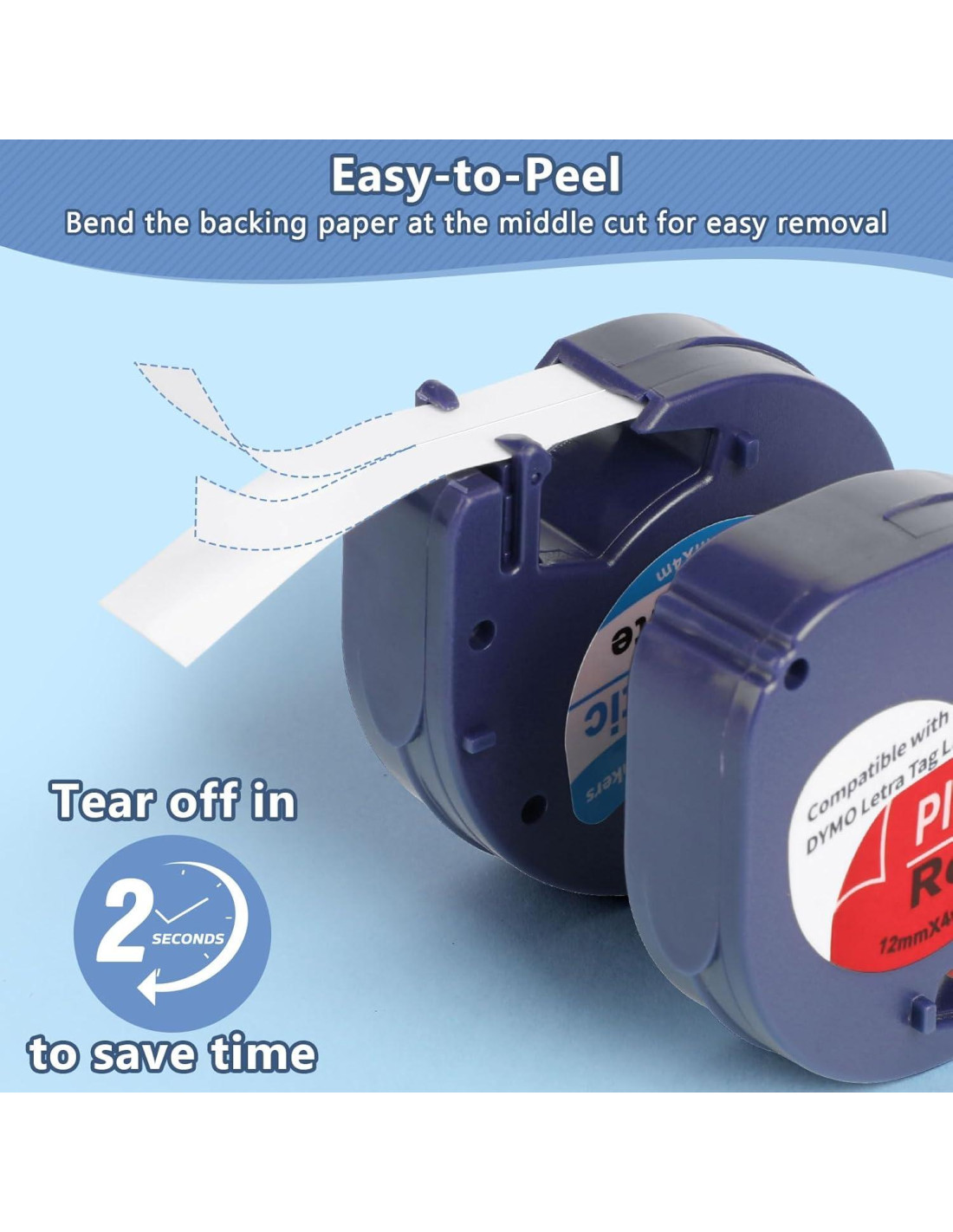 - Fácil de Usar - esta compatible con recargas dymo letratag, el respaldo dividido es fácil de despegar, autoadhesivo permite que se adhiera a objetos con superficies lisas (planas o curvas), duradero y no se separa.