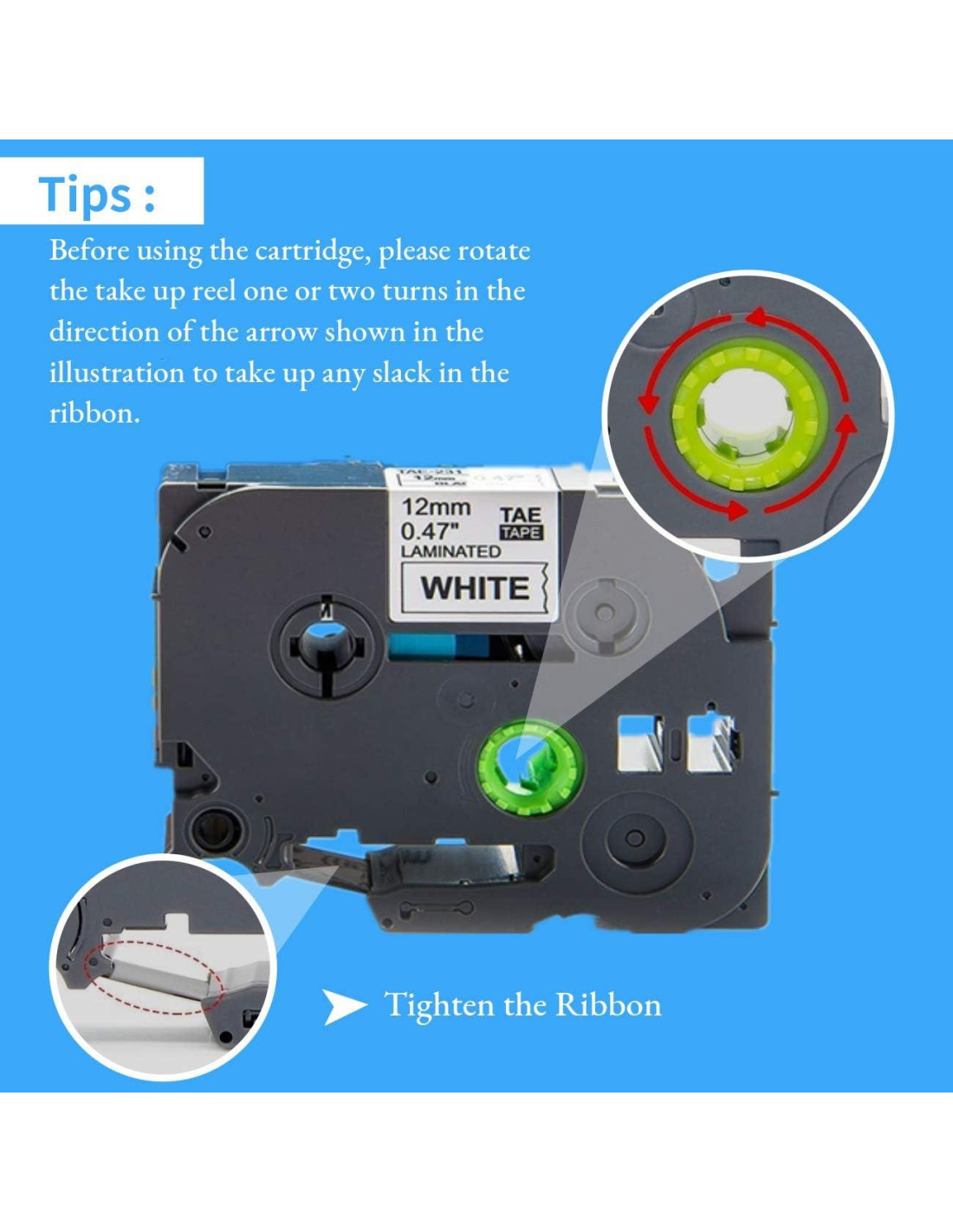 - EL PAQUETE INCLUYE: Paquete de 8 cintas de etiqueta laminadas compatibles brother P-Touch TZe-131 TZe-231 TZe-431 TZe-531 TZe-631 TZe-731 TZe-335 TZc-B31, texto negro sobre fondo blanco/naranja/rojo/azul/amarillo/verde. Ancho: 1/2 pulgada (0.47 pulgadas), Longitud: 26.2 pies (8 metros) cada una, 8 cartuchos de cinta en total 209.6 pies.