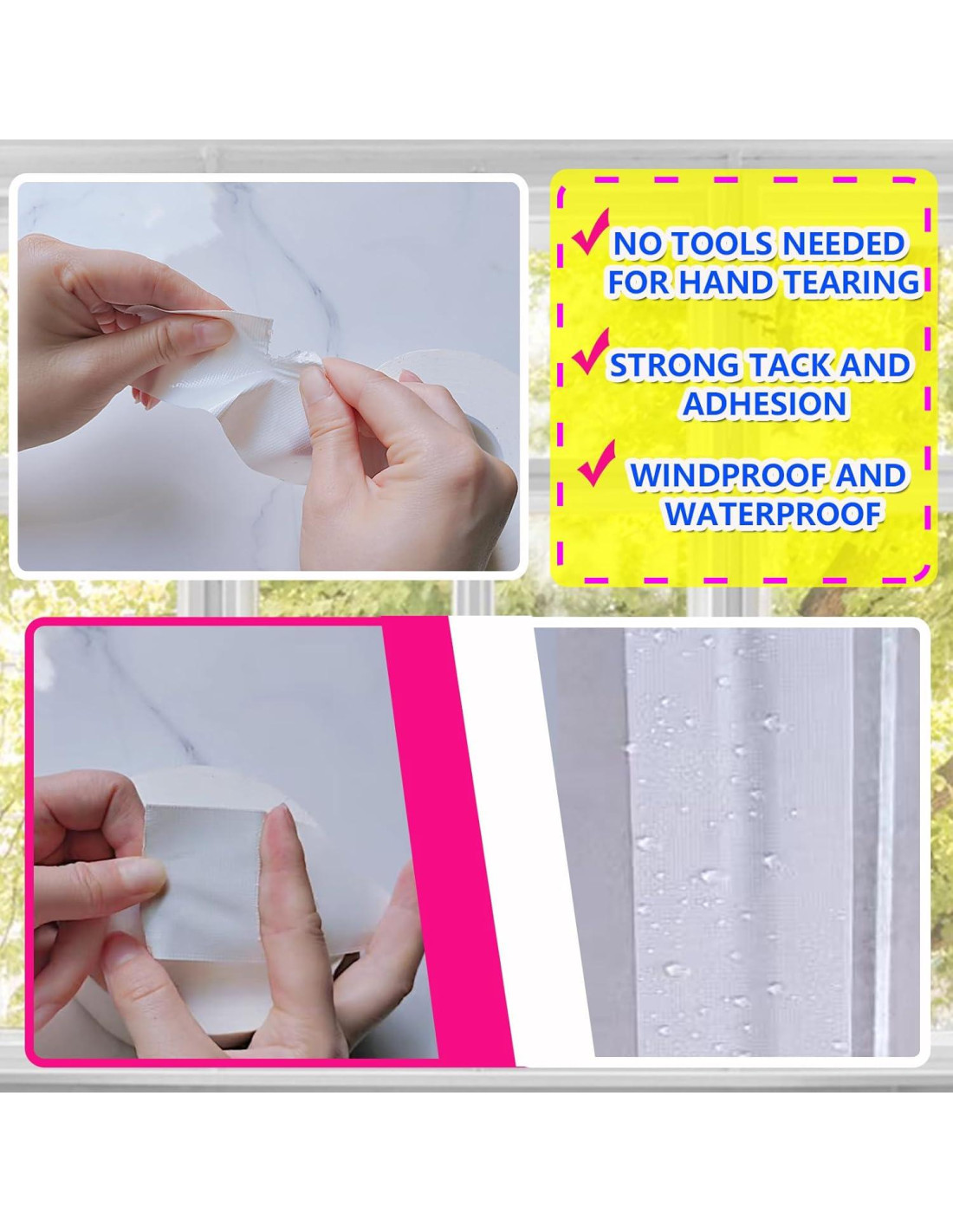 - Cinta de Sellado para Ventanas Sin Residuo: La cinta de ventana blanca tiene un fuerte agarre y adhesión para proporcionar un sellado duradero. La tira de sellado para ventanas se puede quitar sin dañar las ventanas o puertas, y no dejará residuo