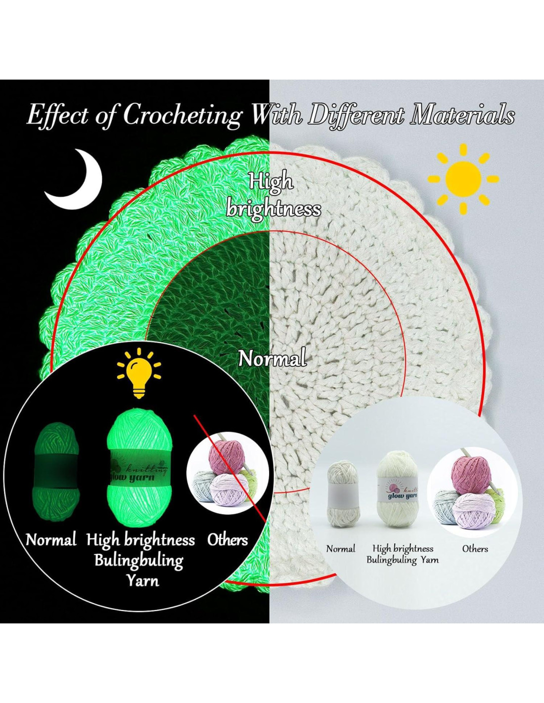 Brilla en la oscuridad: Hilo de crochet Necesitas exponer el hilo completamente a la luz solar durante 15~30 minutos para absorber completamente la luz, ponlo en la oscuridad y recibirás una sorpresa.